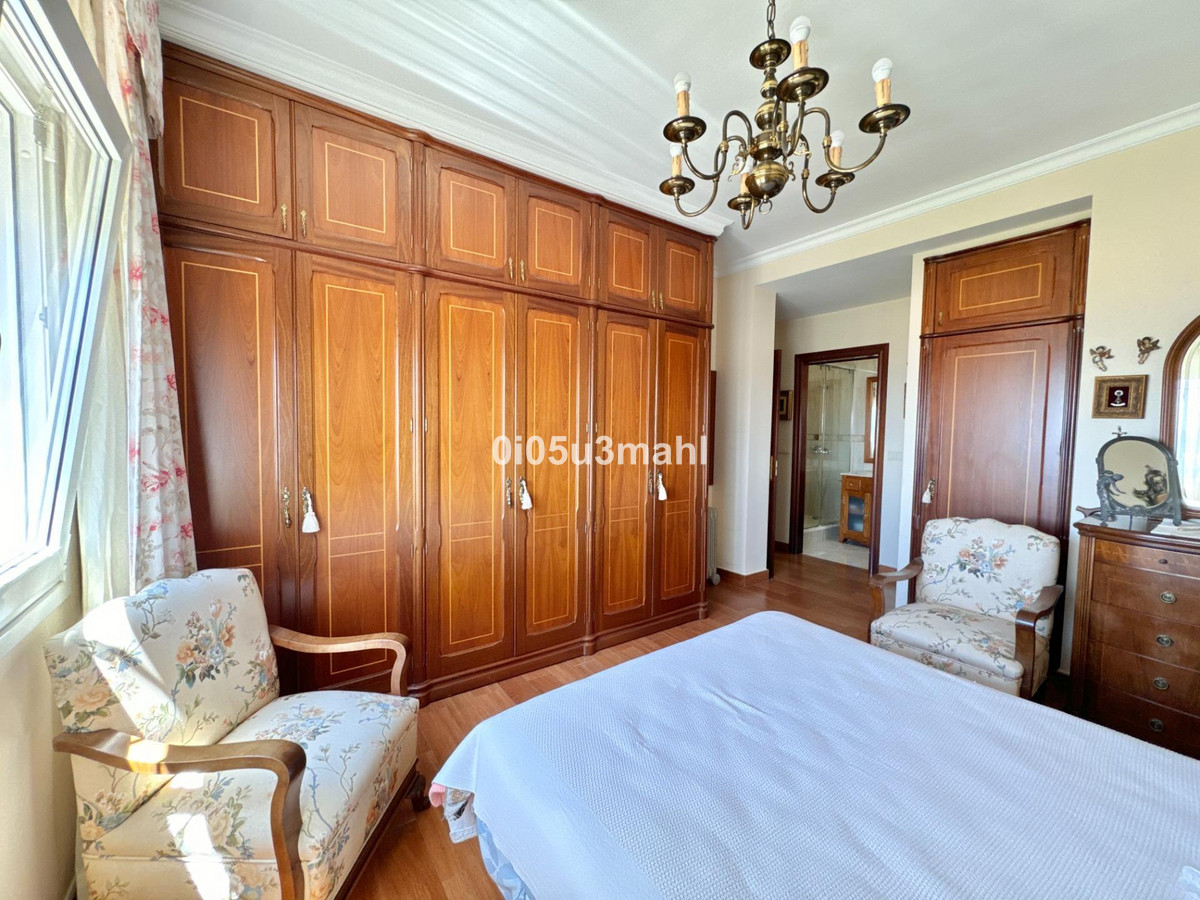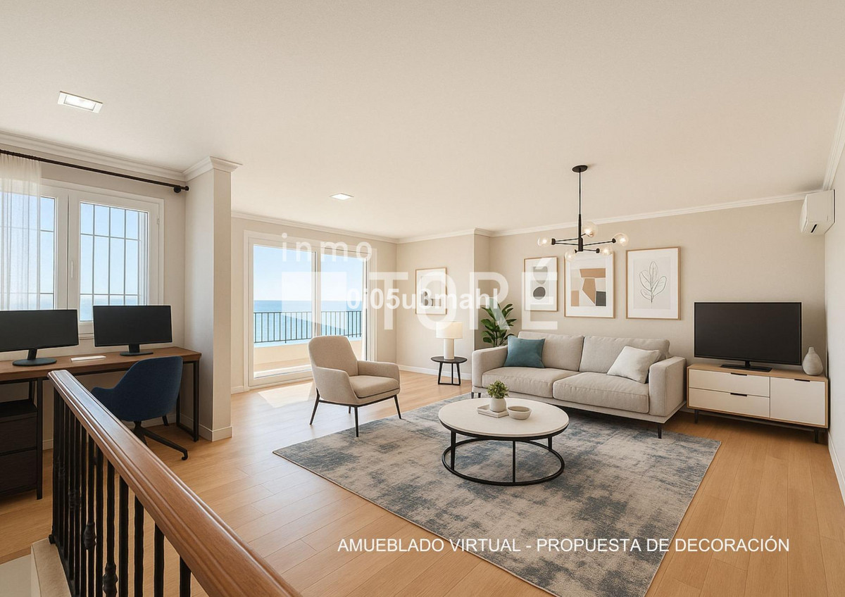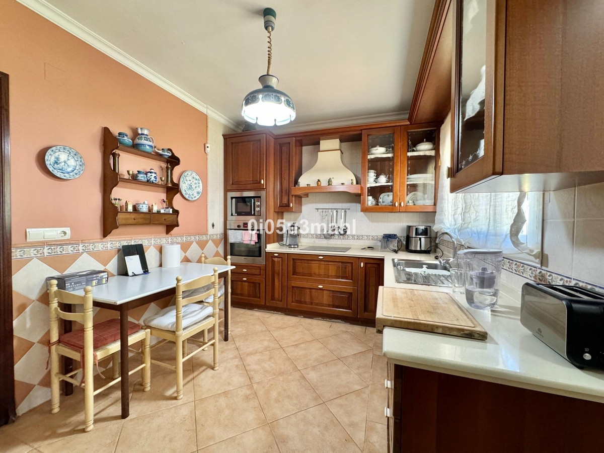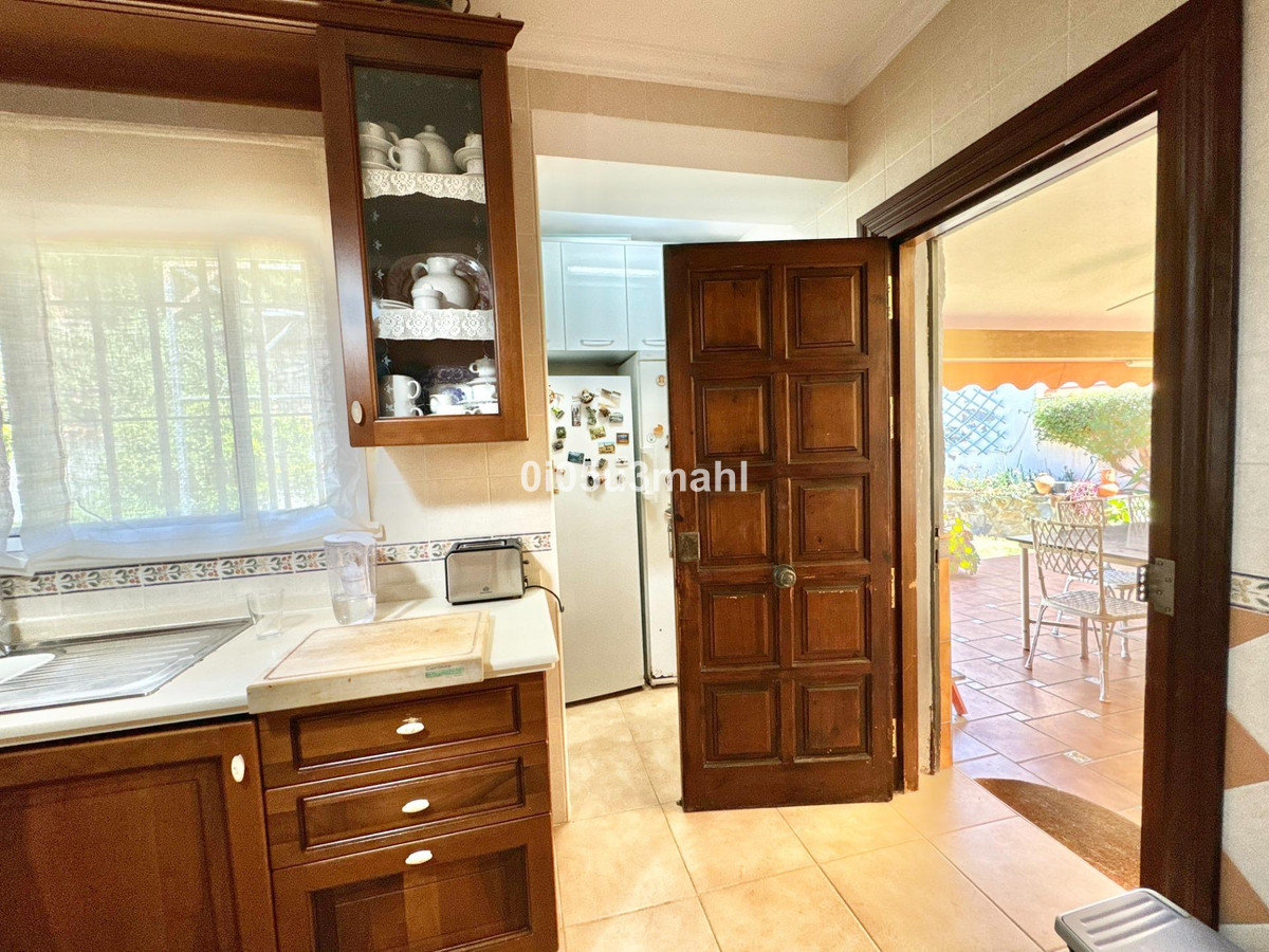 La maison, rénovée en 2006, se déploie sur deux niveaux. Au rez-de-chaussée, on trouve un salon avec cheminée, une grande chambre et une salle de bains. Un escalier confortable mène au premier étage où se situe un vaste et lumineux séjour indépendant donnant accès à une grande terrasse offrant une vue imprenable sur la baie de Malaga. La cuisine indépendante, équipée d'appareils électroménagers et agencée avec soin, se distingue par sa fonctionnalité et son espace. Elle offre un environnement polyvalent et bien organisé, avec un accès aisé aux espaces extérieurs pour profiter de repas en plein air. L'étage comprend également quatre chambres spacieuses, dont trois avec vue sur mer, et deux salles de bains, dont une privative.