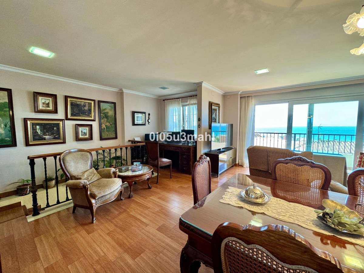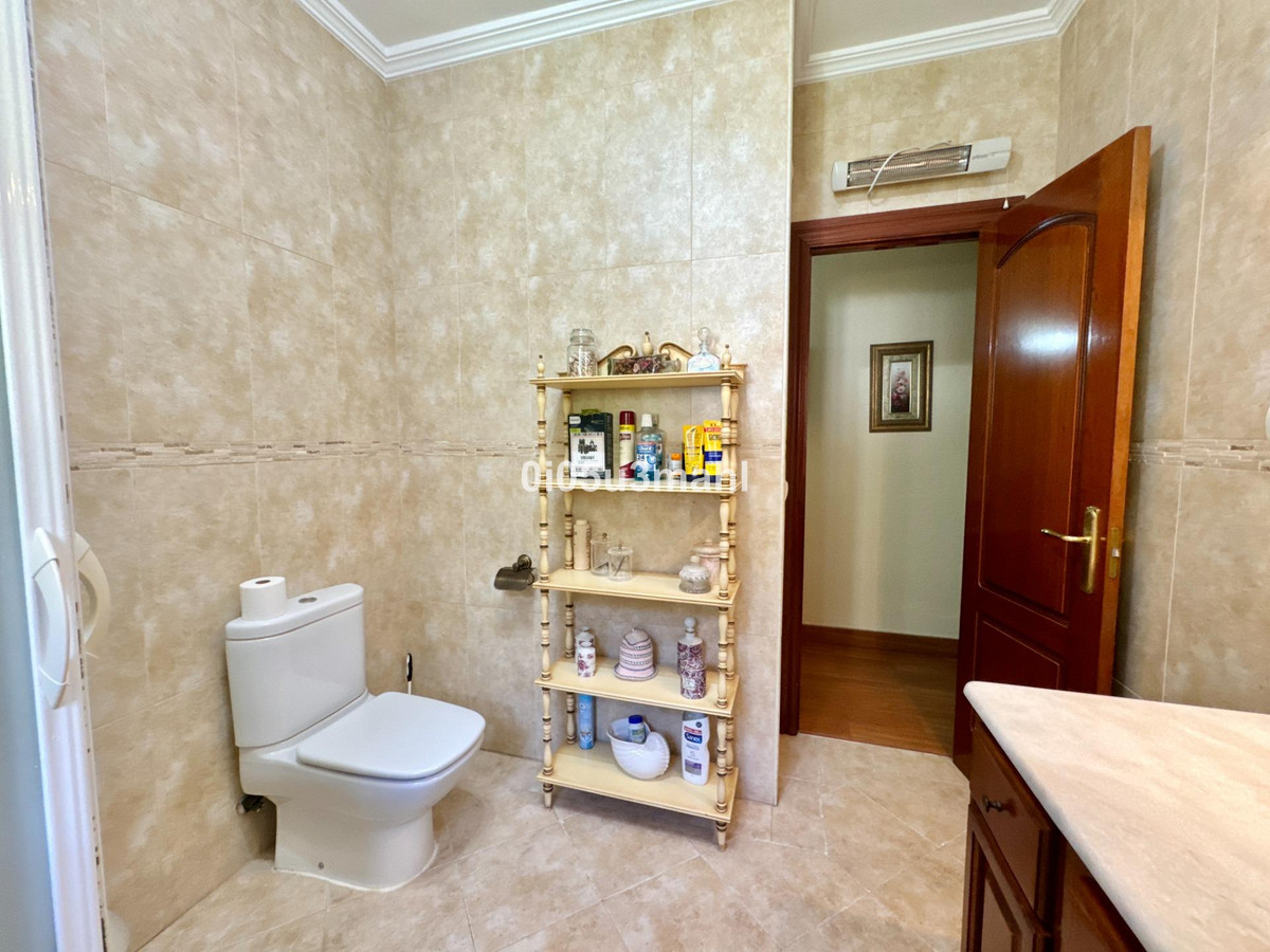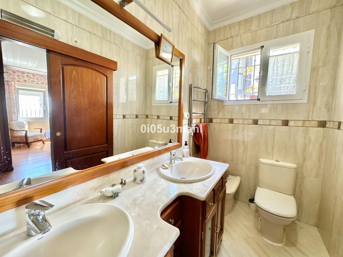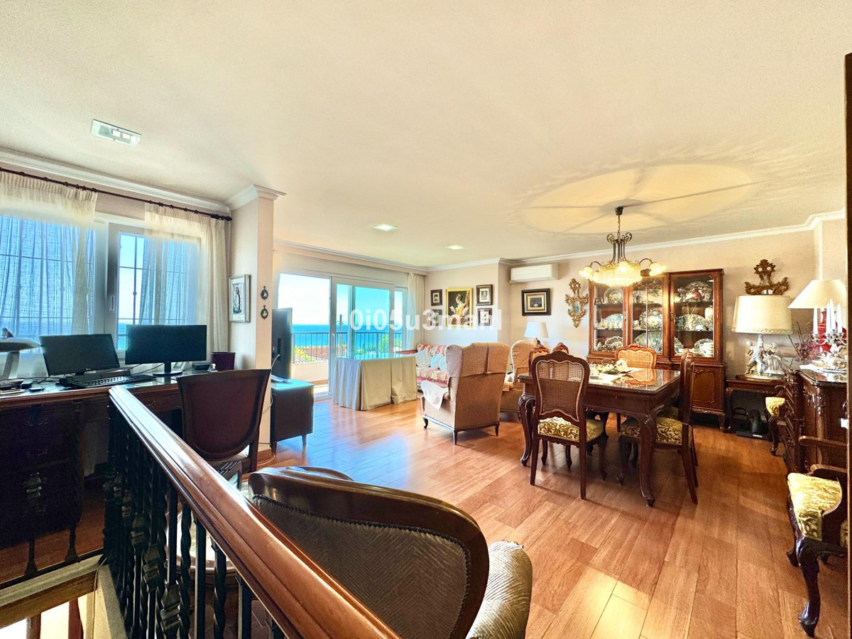 La maison, rénovée en 2006, se déploie sur deux niveaux. Au rez-de-chaussée, on trouve un salon avec cheminée, une grande chambre et une salle de bains. Un escalier confortable mène au premier étage où se situe un vaste et lumineux séjour indépendant donnant accès à une grande terrasse offrant une vue imprenable sur la baie de Malaga. La cuisine indépendante, équipée d'appareils électroménagers et agencée avec soin, se distingue par sa fonctionnalité et son espace. Elle offre un environnement polyvalent et bien organisé, avec un accès aisé aux espaces extérieurs pour profiter de repas en plein air. L'étage comprend également quatre chambres spacieuses, dont trois avec vue sur mer, et deux salles de bains, dont une privative.