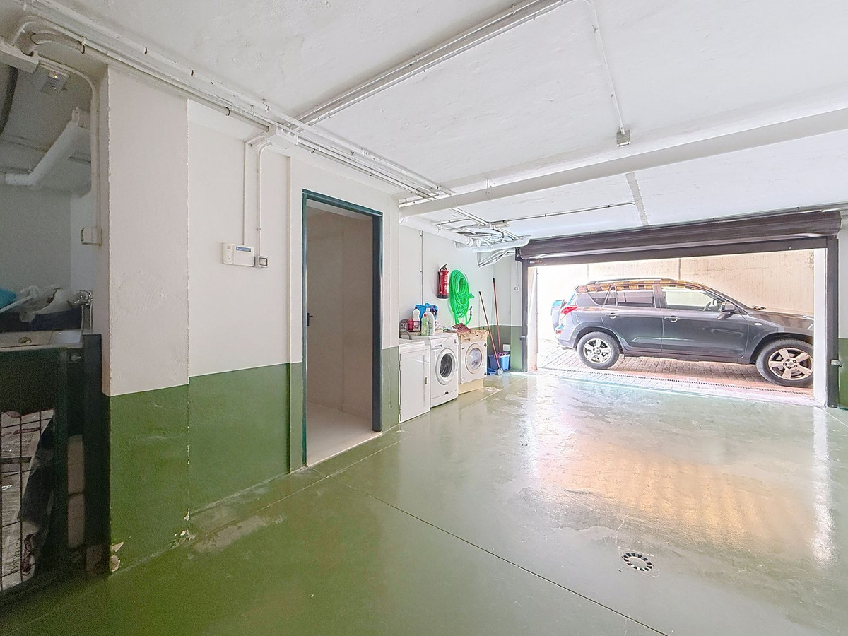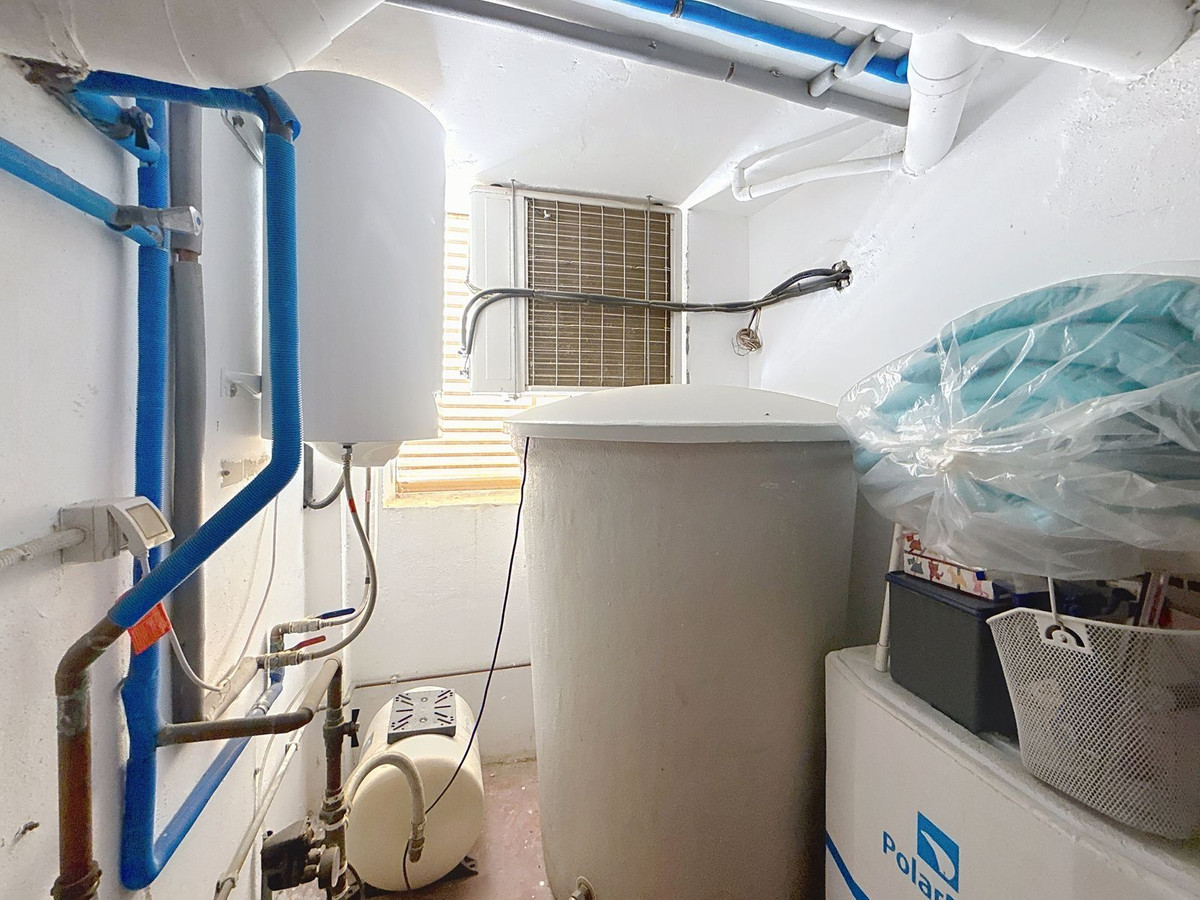 Au niveau inférieur, la villa dévoile un vaste garage pouvant accueillir 3 à 4 voitures, offrant un espace non seulement pour les véhicules, mais aussi pour du rangement ou la création d'un logement d'invités supplémentaire. On y trouve également le système de réserve d'eau indépendant : la propriété est directement raccordée au réseau municipal, mais bénéficie de sa propre réserve pour garantir un approvisionnement constant et fiable. L'ensemble du jardin est équipé d'un système d'arrosage automatique électrique avec programmateur, simplifiant ainsi l'entretien.