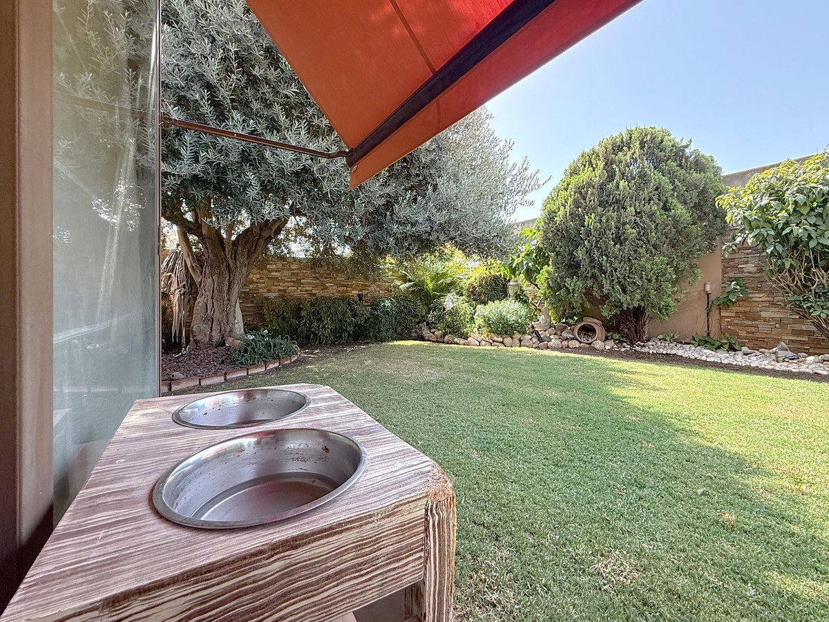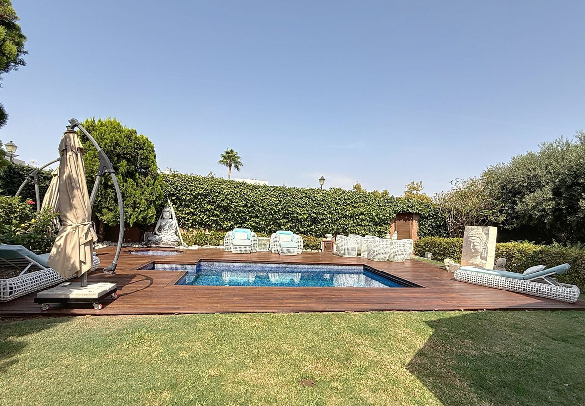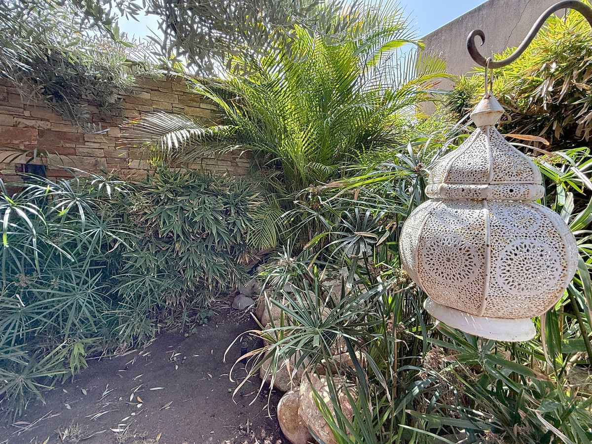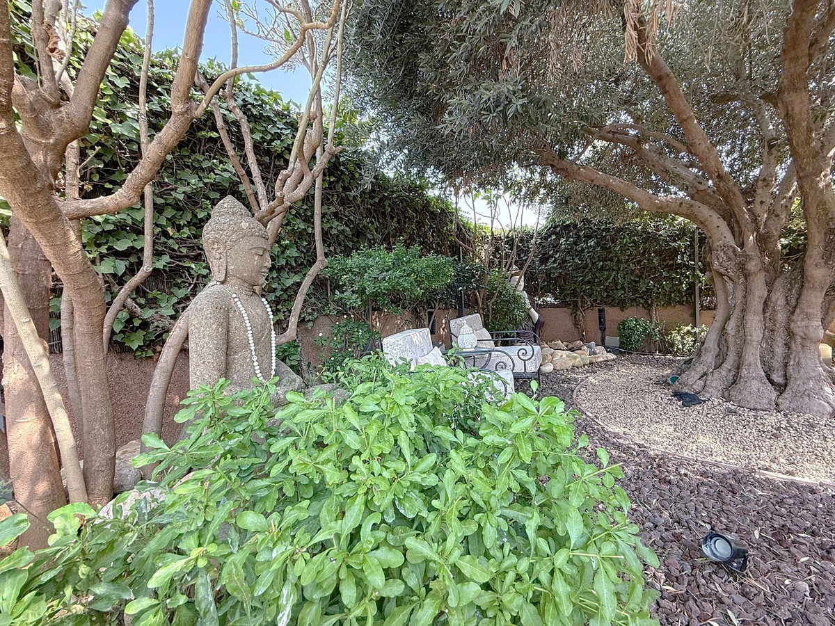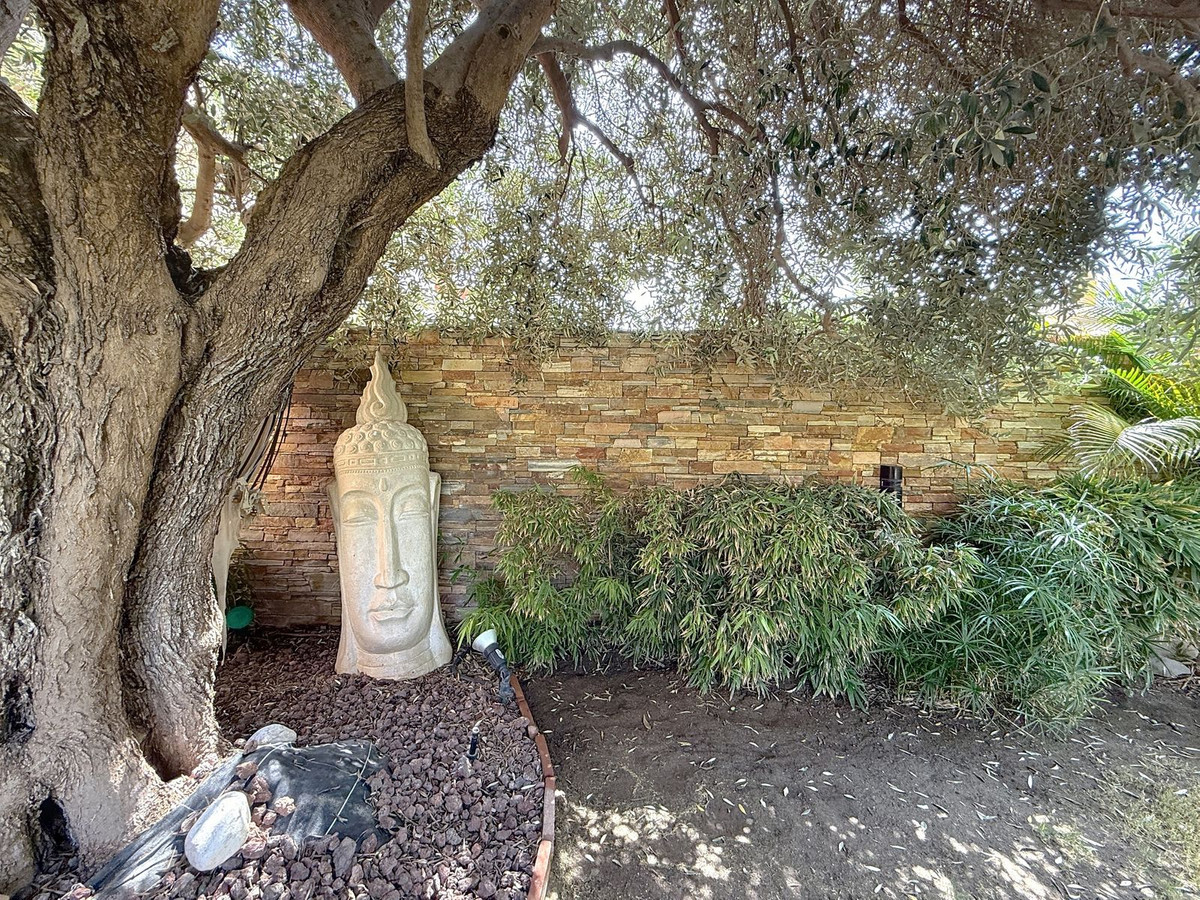 Dès que vous franchissez le portail privé, une sérénité absolue vous enveloppe. Les jardins forment un univers à part : un olivier centenaire veille sur la propriété, des statues de Bouddha invitent à la quiétude, des terrasses ombragées et des coins lounge intimes invitent à la détente. Au cœur de ce havre de paix se trouve une piscine de 6 x 4 m avec jacuzzi, nichée au cœur d'une végétation luxuriante et à l'ombre bienfaisante d'arbres matures – une oasis rare dans ce lieu privilégié.
