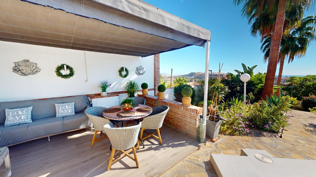 Découvrez un monde où luxe et tranquillité se conjuguent dans cette magnifique villa individuelle, située dans le quartier résidentiel paisible d'El Capitán, près de Torre del Mar et d'Almayate, sur la côte est de Malaga. Son emplacement est idéal pour ceux qui recherchent calme et intimité tout en restant proches des commodités. En quelques minutes seulement, vous rejoindrez les plages d'Almayate et de Torre del Mar, où vous trouverez de charmants restaurants, des boutiques et des promenades animées en bord de mer. La ville de Malaga et l'aéroport sont à seulement 35 minutes en voiture. Nichée sur un terrain privé de 811 m², la villa offre 310 m² d'espace de vie élégant, entouré d'un jardin facile d'entretien, clos d'un mur pour une intimité et une sécurité optimales. Un portail privé permet l'accès aux véhicules, et l'espace extérieur comprend une piscine étincelante, une vaste terrasse couverte pour se détendre à l'ombre, et un charmant coin salon sous une coupole, parfait pour savourer un verre ou un bon livre. À l'intérieur, la maison impressionne par ses espaces généreux et sa luminosité naturelle. Le hall d'entrée mène à un garage double avec espace de rangement supplémentaire. Au rez-de-chaussée, vous trouverez un vaste séjour avec un coin salon attenant et de larges baies vitrées s'ouvrant sur la piscine et le jardin, ainsi qu'une salle de bains et une chambre idéale pour les invités. À l'étage, le cœur de la maison se dévoile : un espace lumineux et décloisonné réunissant la cuisine, la salle à manger et le séjour. La lumière naturelle inonde la pièce à travers de grandes fenêtres, créant une atmosphère chaleureuse et accueillante, propice à la détente en famille comme aux réceptions élégantes. La cuisine entièrement équipée dispose d'élégants placards en bois, d'un plan de travail en granit et offre une vue sur le jardin. Depuis le séjour, vous accédez à un grand balcon offrant une vue imprenable sur la mer Méditerranée. Cet étage comprend également deux chambres, une salle de bains spacieuse et des toilettes séparées. Une terrasse donnant sur la rue est accessible depuis ce niveau ou par un escalier extérieur, offrant un espace extérieur supplémentaire pour se réunir ou profiter de soirées paisibles. Au dernier étage, une terrasse sur le toit couronne la villa, offrant une vue panoramique sur la mer, les montagnes et la campagne environnante – un lieu idéal pour admirer les couchers de soleil et la sérénité des soirées andalouses. Cette villa allie élégance, confort et charme méditerranéen : un véritable havre de paix où chaque jour est une invitation au voyage. Nous serions ravis de vous présenter prochainement cette propriété de rêve, que ce soit en personne ou par le biais d’une visite virtuelle. Car ce monde est unique, à l’image de notre Axarquía. En Andalousie. Sur la Costa del Sol. Ici, la vie est douce et ensoleillée.