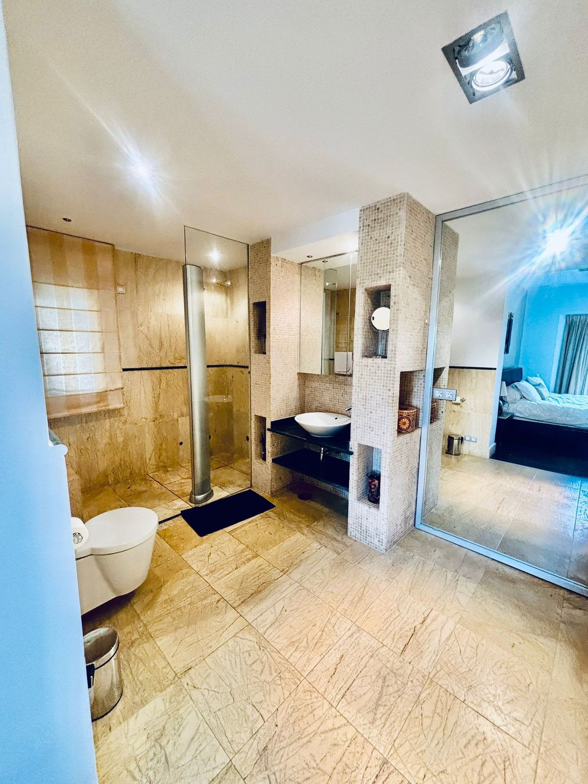 Magnifique villa située dans le prestigieux lotissement San Roque Club, à proximité de l'un des plus beaux golfs d'Andalousie, avec accès privé et sécurité 24h/24, incluant un poste de garde et un agent de sécurité dans tout le complexe. Cette somptueuse villa offre une vue imprenable sur le golf et les montagnes. Implantée sur un terrain de 2 250 m² avec une surface habitable de 600 m², elle se déploie sur trois niveaux. Elle comprend six chambres spacieuses, chacune avec salle de bains et dressing. L'une des chambres dispose également d'un hammam. Le vaste séjour, spectaculaire, s'ouvre sur le jardin et la piscine. L'immense cuisine est équipée d'appareils Miele et de finitions luxueuses. La salle à manger, attenante à la cuisine, et une grande pièce dédiée à une cave à vin exclusive complètent ce bien. Un appartement indépendant avec sa propre cuisine se trouve également au rez-de-chaussée. Le jardin comprend un espace détente, un billard, un coin repas, un barbecue, une salle de sport entièrement équipée et une immense piscine de 12 x 6 mètres ! À l'arrière, un garage fermé peut accueillir deux voitures, et des places de parking supplémentaires sont disponibles à l'extérieur, tout en restant sur la propriété privée. Cette villa est également équipée d'un chauffage au sol et d'un système audio Sonos. La villa de vos rêves est disponible pour une visite.