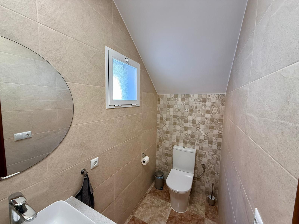 Au premier étage, la lumière naturelle inonde les deux chambres donnant sur la mer : toutes deux s’ouvrent sur une grande terrasse et offrent une vue partielle sur la mer. La chambre située à l’arrière est spacieuse et dispose d’un balconnet. Cet étage comprend également deux salles de bains rénovées, dont une attenante à la grande chambre parentale.