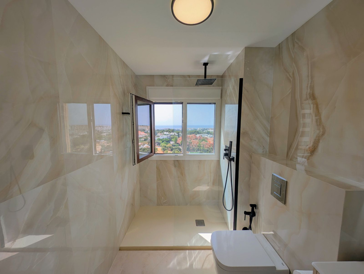 This fully renovated PENTHOUSE 1-bedroom, 1-bathroom apartment offers the perfect blend of modern living and comfort, nestled in the heart of Nueva Andalucía, Aloha. Boasting ,spectacular sea views of both La Concha mountain and Gibraltar, it provides a peaceful yet connected retreat close to all amenities.