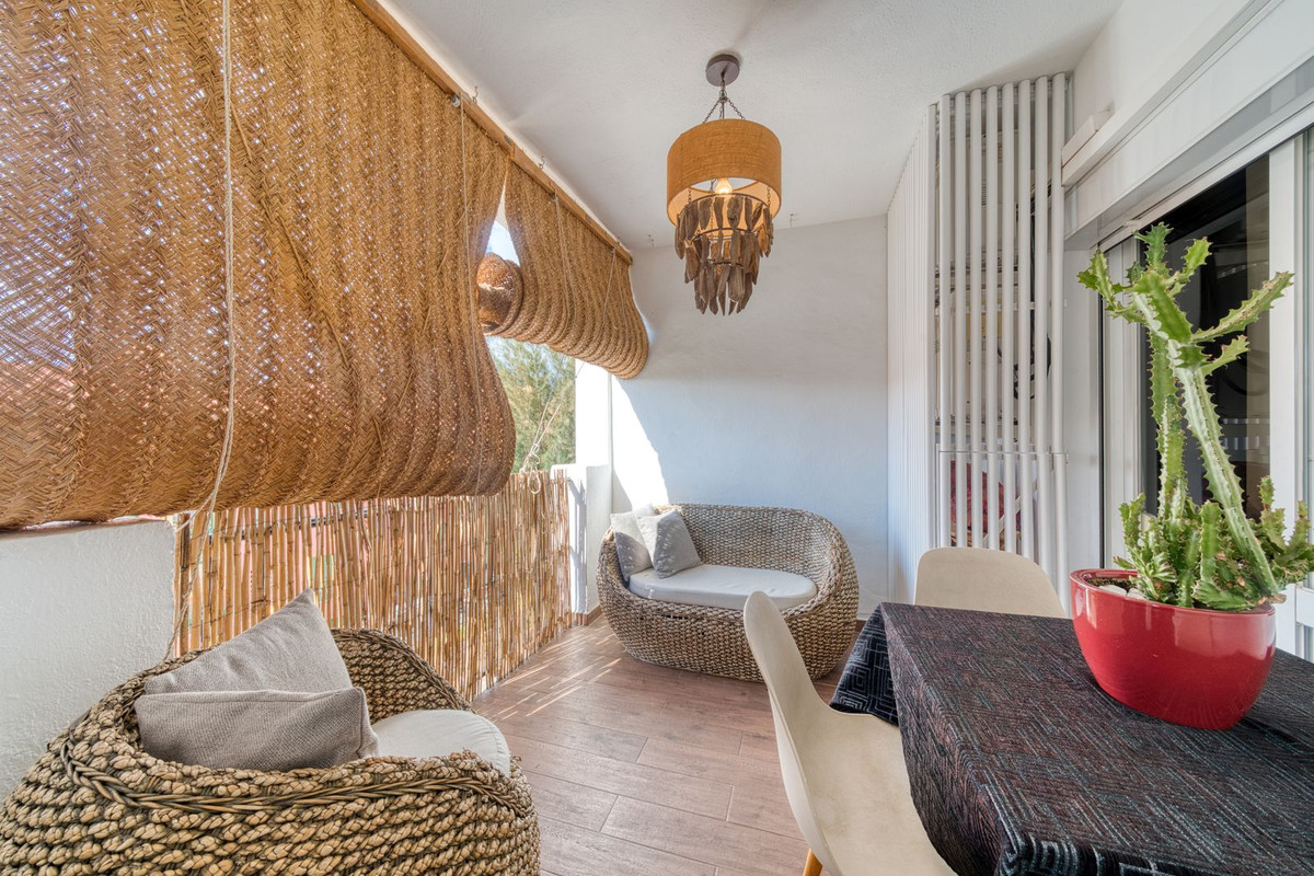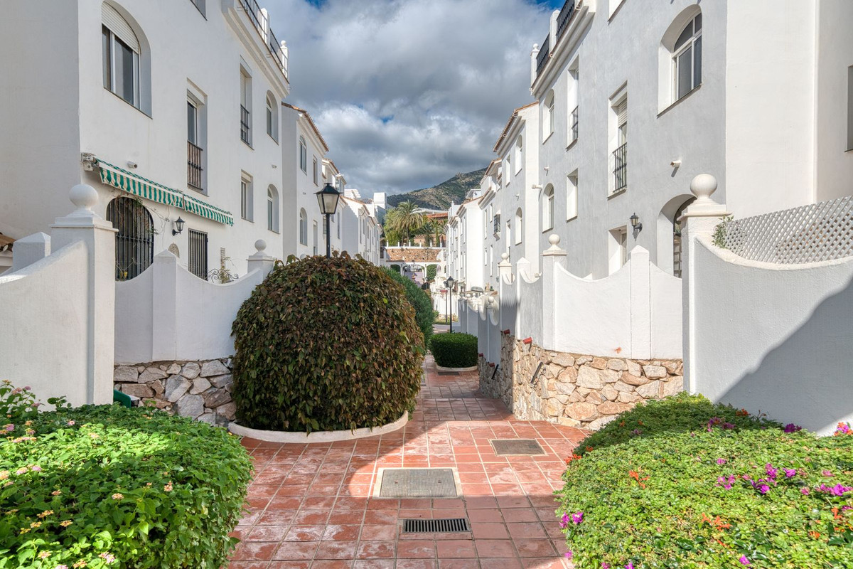 Les deux chambres doubles offrent un havre de paix et de confort. La chambre principale dispose de sa propre salle de bains privative, tandis que la seconde chambre offre une grande flexibilité pour accueillir des invités, la famille ou pour le télétravail. Chaque salle de bains est équipée d'installations modernes et d'un carrelage raffiné, alliant fonctionnalité et élégance discrète. Le cadre exceptionnel contribue à un cadre de vie privilégié. Pueblo del Sol est réputé pour ses façades blanchies à la chaux, ses toits de tuiles, ses bougainvillées en fleurs et ses ruelles piétonnes tranquilles qui créent une authentique ambiance andalouse. Au cœur de la résidence se trouve une magnifique piscine entourée de verdure, un lieu serein idéal pour se détendre durant les longs étés de la Costa del Sol.