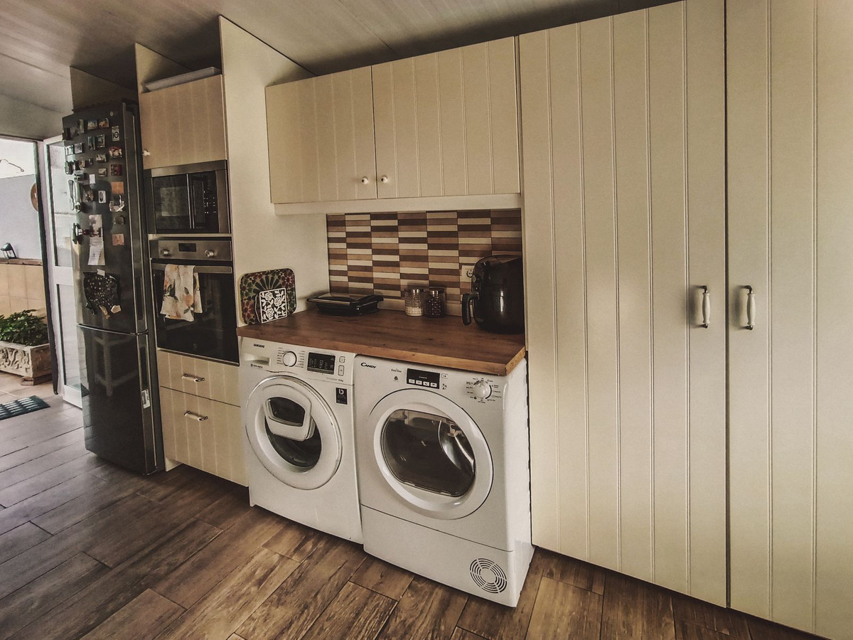 Furthermore, the house is designed to be functional and accessible, with all rooms on one floor. Built-in wardrobes in the bedrooms offer ample storage space, while the storage room and wood shed provide additional solutions for keeping everything organized. With good orientation, natural light floods every corner of this home.