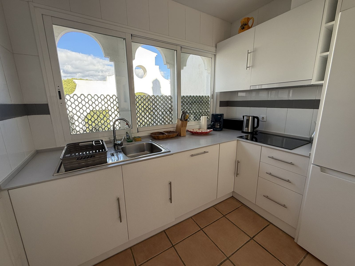 The apartment features a large south-facing terrace of 35 m², bathed in sunlight throughout the day, a wonderful space to relax, dine, or enjoy the peaceful surroundings. The kitchen is well equipped and can easily be transformed into an open-plan design to create a more modern flow with the living area. Both bedrooms are spacious and bright, offering plenty of storage and privacy.