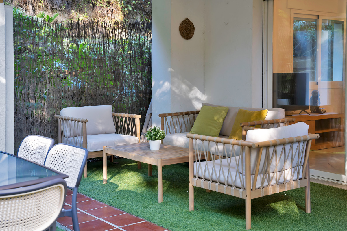 Nous vous présentons cette magnifique propriété située dans l'un des quartiers les plus prisés et prestigieux de Marbella : l'emblématique Golden Mile, un lieu où luxe, confort et qualité de vie se conjuguent harmonieusement. À seulement 800 mètres de la plage, vous profiterez de la Méditerranée en seulement 10 minutes à pied. La propriété est entourée de tous les services essentiels et haut de gamme : supermarchés, restaurants, écoles nationales et internationales, instituts, pharmacies, arrêts de bus, ainsi que les hôtels emblématiques Marbella Club et Puente Romano. Un emplacement privilégié qui vous permettra de rejoindre le centre-ville à pied et de profiter pleinement du quotidien. L'accessibilité est excellente : à 5 minutes en voiture de Puerto Banús, à la même distance du centre-ville et de la vieille ville de Marbella, et avec un accès direct à l'autoroute. L'aéroport de Malaga est à seulement 35 minutes. Située dans une résidence sécurisée construite en 2002, cette propriété offre sécurité, jardins soignés, piscine commune et terrain de paddle, faisant de ce logement un véritable bijou pour ceux qui recherchent confort, style et qualité. Cet appartement de plain-pied, exposé ouest, est idéal pour profiter du soleil de l'après-midi et dispose d'une charmante véranda de 20 m² et d'un jardin privatif, garantissant intimité et atmosphère chaleureuse. La surface habitable totale de 117 m² se compose comme suit : un vaste séjour/salle à manger baigné de lumière naturelle, une cuisine américaine moderne entièrement rénovée en 2023, deux chambres et deux salles de bains complètes, ainsi qu'un jardin privatif, idéal pour se détendre ou recevoir. De plus, une place de parking souterrain avec accès direct à l'appartement par ascenseur offre un confort optimal. L'appartement est équipé de la climatisation et du chauffage et est adapté aux personnes à mobilité réduite. Une opportunité unique grâce à son emplacement privilégié sur le Golden Mile. Parfait comme investissement, résidence secondaire ou résidence principale. Forte rentabilité locative grâce à une demande soutenue dans le secteur tout au long de l'année. Idéal pour ceux qui souhaitent améliorer leur qualité de vie ou investir dans l'un des quartiers les plus prometteurs de la Costa del Sol. Une propriété au charme méditerranéen, où le confort moderne rencontre l'exclusivité de Marbella. Le document d'information abrégé est disponible. Frais : Taxes (ITP ou TVA + AJD) + Frais de notaire et d'enregistrement foncier. BRF