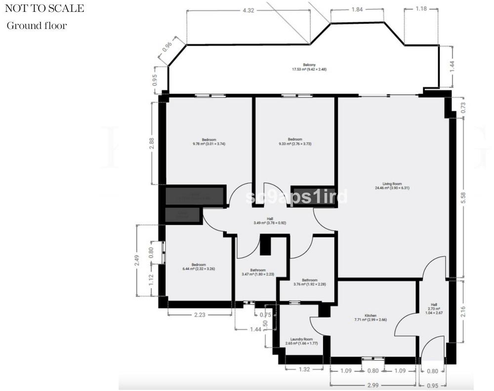 À l'intérieur, l'appartement comprend trois chambres et deux salles de bains, toutes les chambres étant équipées de placards intégrés.