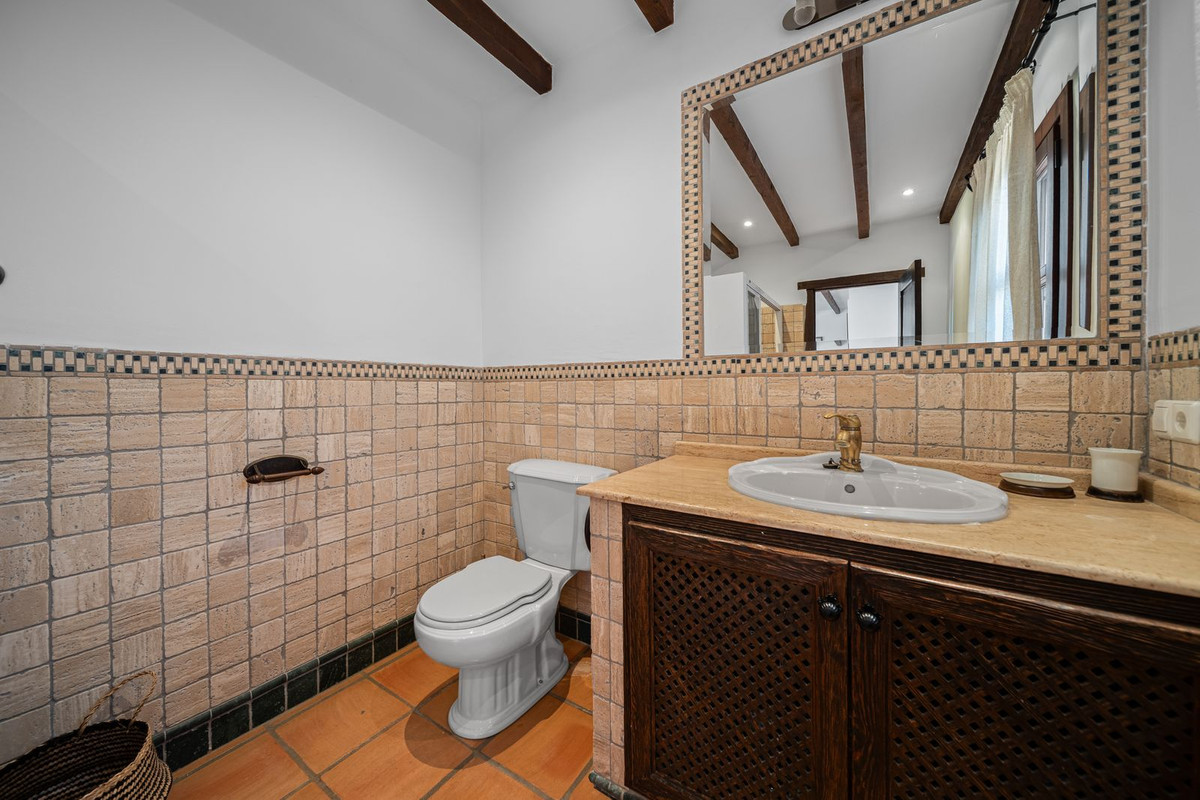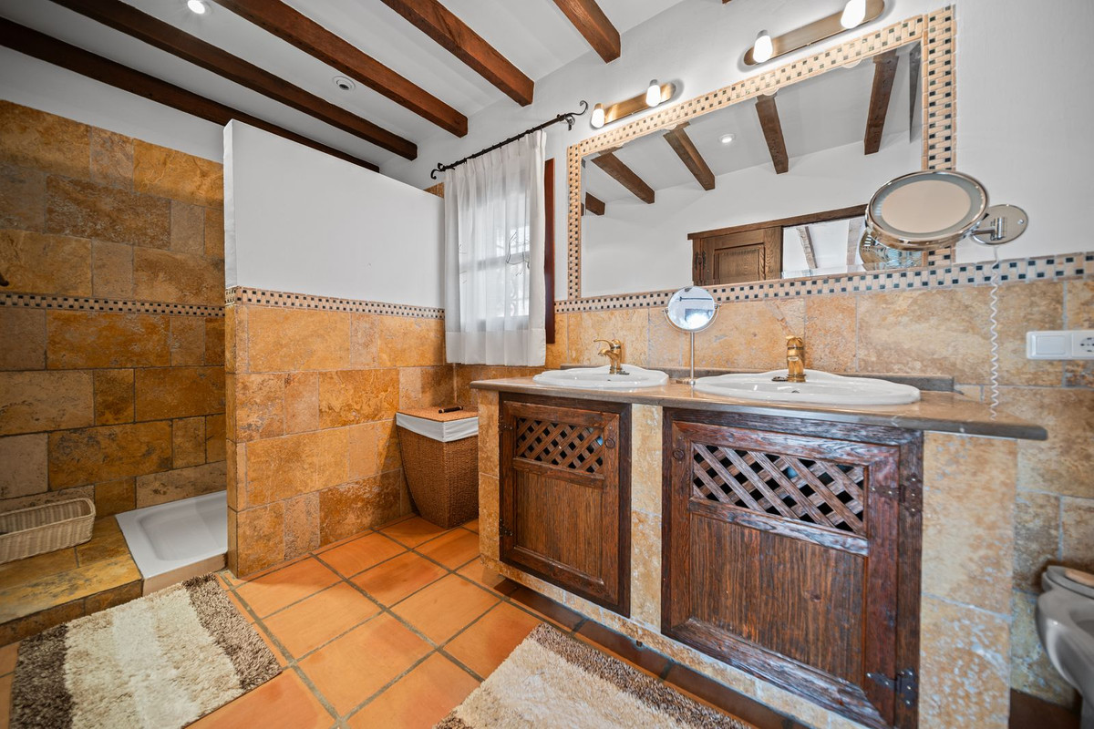 La villa est en excellent état et séduit par son caractère andalou authentique : de magnifiques poutres en bois, des détails en brique et en pierre, et une élégante finition rustique qui crée une atmosphère chaleureuse et accueillante.