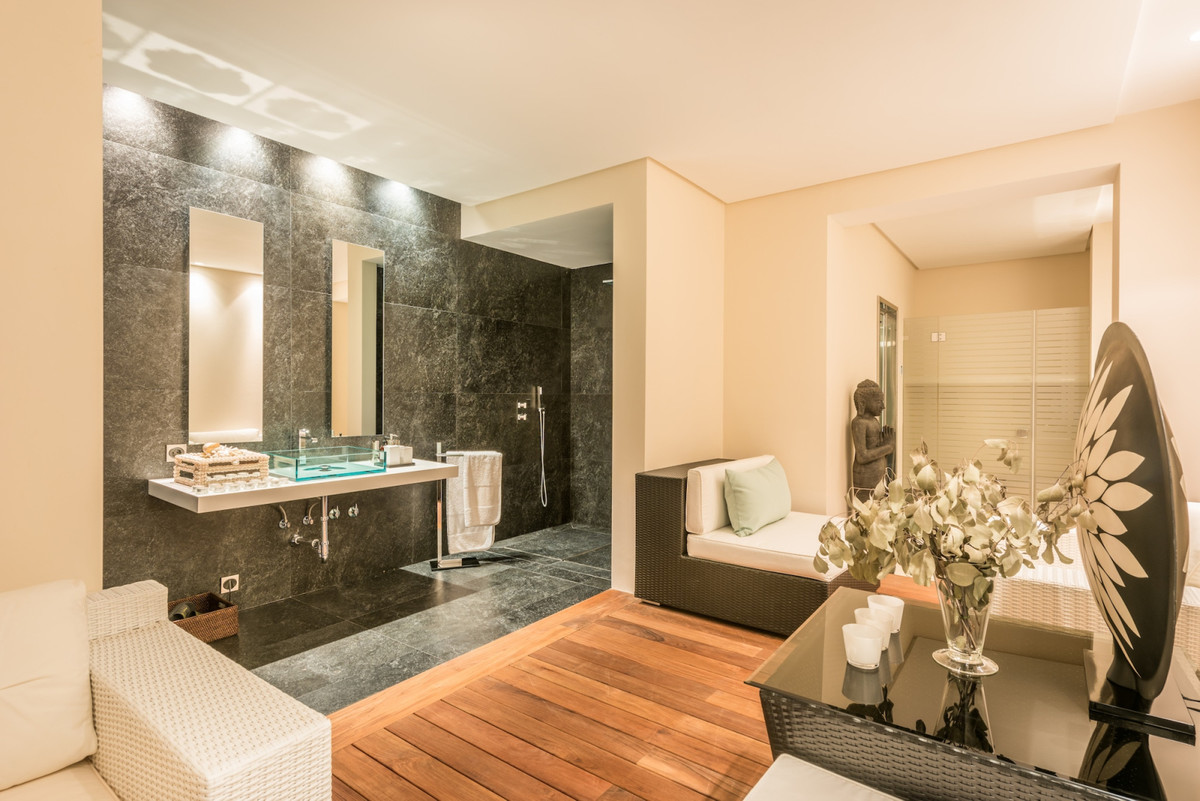 L'espace extérieur, avec sa vaste piscine, ses remarquables jeux d'eau et ses jardins paysagers subtropicaux matures, conserve le même style et évoque un sentiment de beauté et d'harmonie.