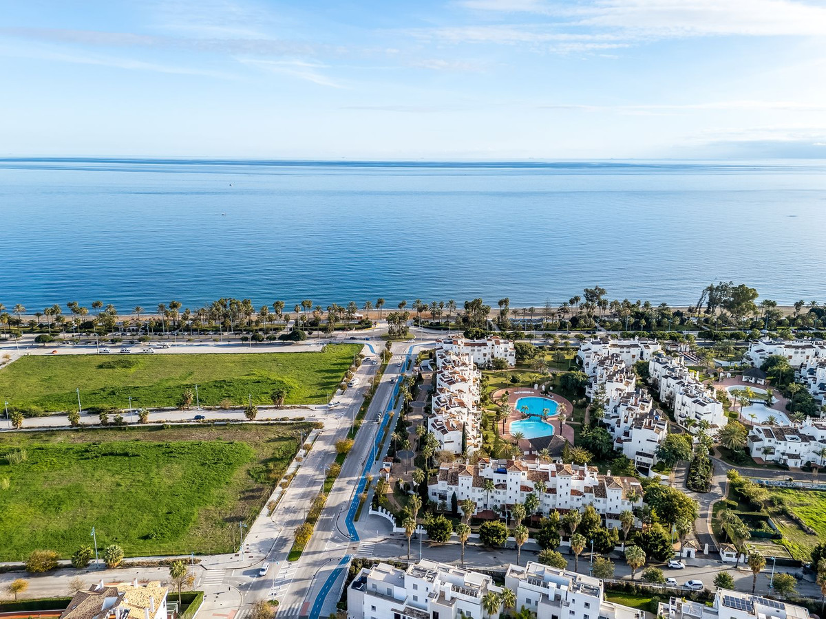 Jade Beach est un complexe résidentiel moderne situé à San Pedro de Alcántara, construit par Taylor Wimpey en 2016. Ce penthouse d'angle comprend trois chambres, deux salles de bains, une vaste terrasse au rez-de-chaussée et une terrasse privative sur le toit avec jacuzzi. Le complexe offre une piscine commune, des jardins paysagers, deux places de parking et un cellier. Il se trouve à quelques pas de la plage, du centre-ville de San Pedro et du club de padel NAC. L'appartement bénéficie d'une vue imprenable sur la piscine, le jardin et les montagnes environnantes. Figurant parmi les rares programmes immobiliers neufs du front de mer de San Pedro, Jade Beach propose un cadre de vie contemporain dans un emplacement privilégié, à proximité immédiate de toutes les commodités.