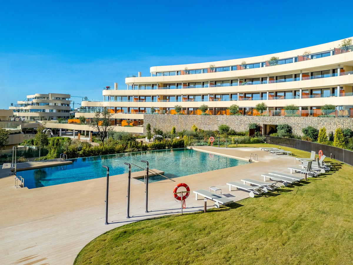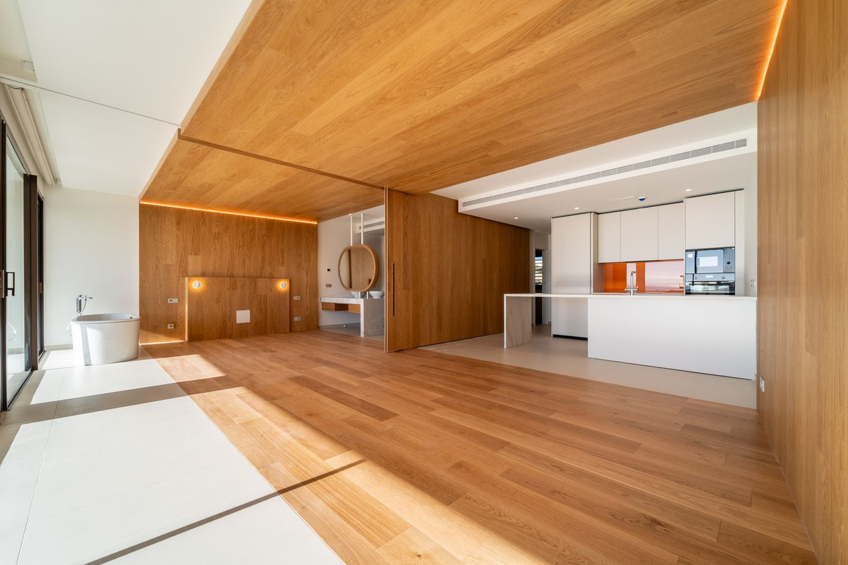 Appartement neuf de luxe orienté sud-est, situé dans une urbanisation exclusive, avec 2 chambres, 2 salles de bains, un spacieux séjour-salle à manger, une cuisine américaine entièrement meublée et équipée d'appareils électroménagers Bosch, un espace buanderie avec lave-linge/sèche-linge, une grande terrasse de 40 m² avec une vue magnifique sur la mer.