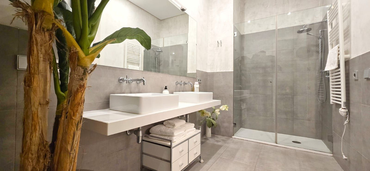Ce bien comprend une salle de bains spacieuse avec douche à l'italienne, des sols en bois et en porcelaine, la climatisation centrale et un équipement électroménager complet. Chaque détail a été soigneusement pensé.