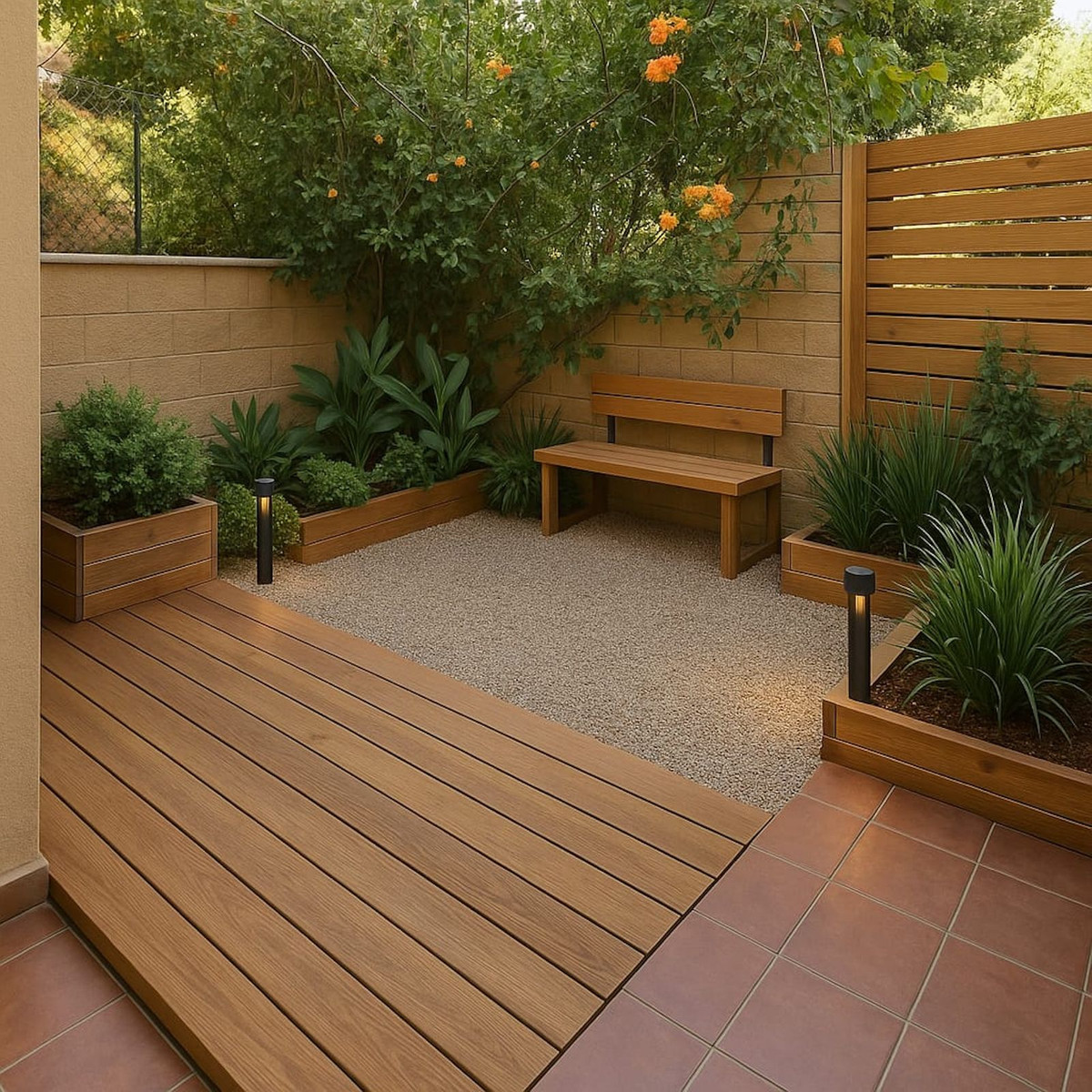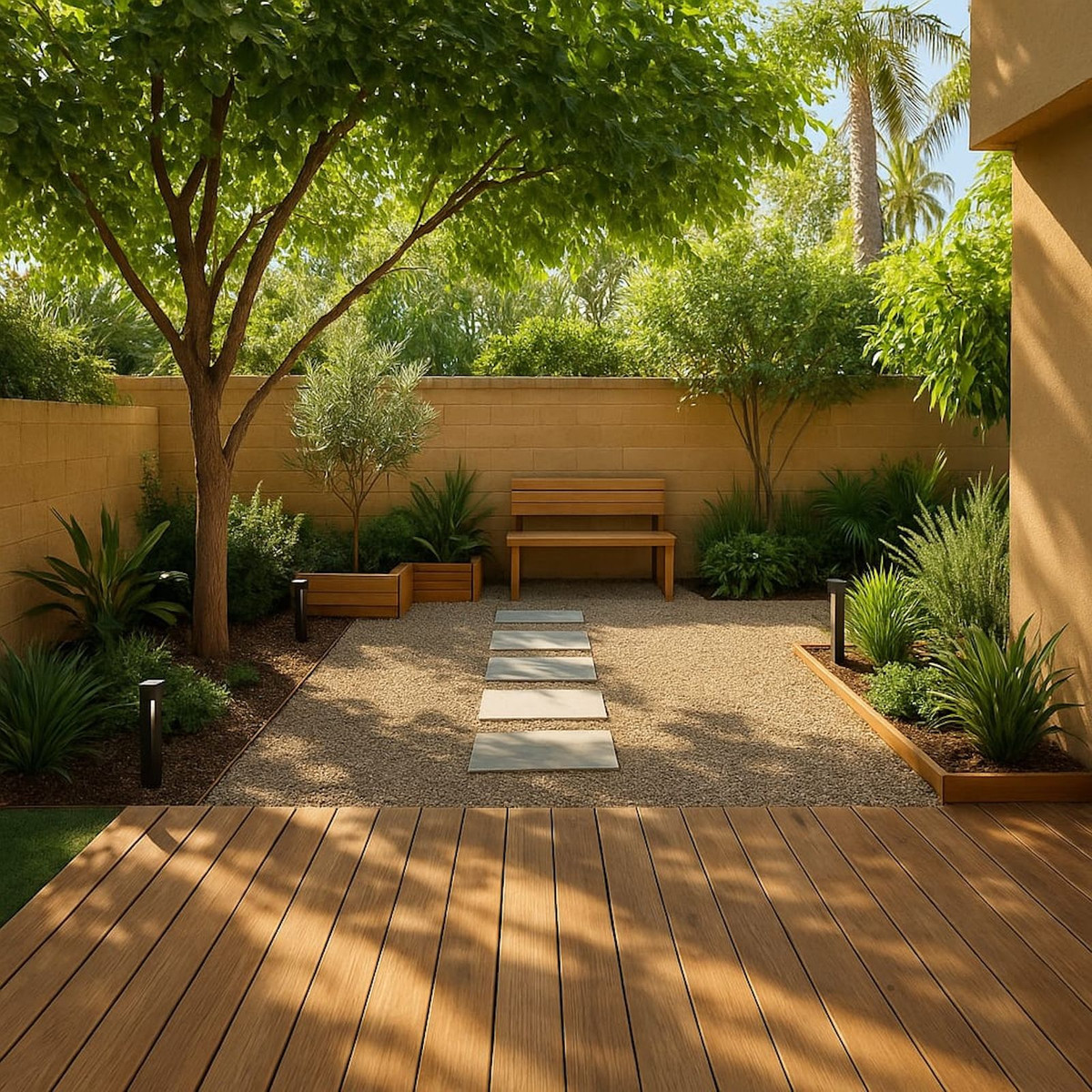 Nous avons inclus un aménagement de jardin idéal dans la séance photo, mais le jardin de la maison peut être tout aussi moderne et harmonieux.