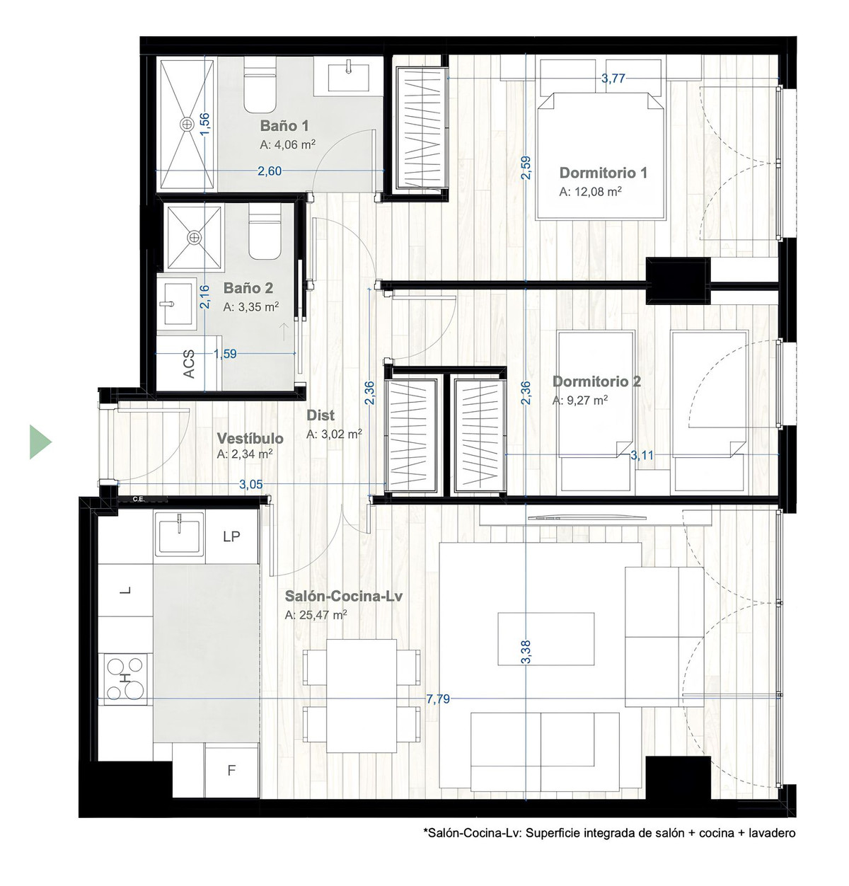 Vivez une expérience urbaine exceptionnelle dans cet appartement situé au 24e étage d'un des nouveaux programmes immobiliers les plus prisés de Malaga. Idéalement situé en plein cœur de la ville, ce logement élégant et moderne offre une vue panoramique spectaculaire sur Malaga, les montagnes et le stade de football. Il comprend un vaste séjour/salle à manger, une cuisine moderne entièrement équipée, deux chambres et deux salles de bains, dont une privative. Cet appartement neuf, entièrement meublé, n'a jamais été habité ni loué.