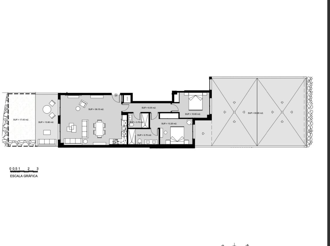 Elle dispose de deux terrasses privatives d'une superficie totale de 110 m², permettant de profiter du soleil tout au long de la journée. La terrasse principale et le jardin, accessibles directement depuis le séjour, bénéficient d'une orientation sud-ouest, tandis que la terrasse arrière, orientée est, assure un ensoleillement optimal à différents moments de la journée.