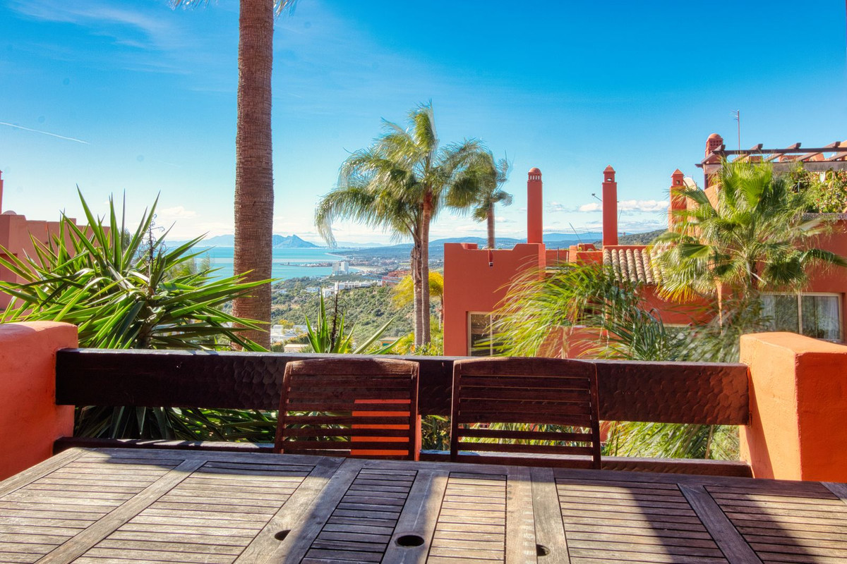 Cette spacieuse maison offre un parfait équilibre entre confort et élégance, avec une vue imprenable sur Gibraltar et la côte africaine. Répartie sur trois niveaux, la propriété propose de généreux espaces de vie et un agencement bien pensé, idéal pour se détendre comme pour recevoir. Au rez-de-chaussée, vous trouverez un salon-salle à manger accueillant, une cuisine entièrement équipée et des toilettes invités. Une vaste terrasse prolonge le salon, parfaite pour profiter de la brise méditerranéenne. Le premier étage comprend deux grandes chambres, chacune avec sa propre salle de bains et son balcon privé. Le sous-sol offre une troisième chambre, un espace polyvalent supplémentaire pouvant servir de salle de cinéma, de salle de jeux ou de bureau, ainsi qu'une salle de bains. La propriété est couronnée par une impressionnante terrasse sur le toit de 60 m², où vous pourrez vous prélasser au soleil et admirer une vue panoramique sur la mer et les montagnes dans les deux directions : Marbella, Sotogrande et la côte africaine. Une place de parking privée juste devant la maison vous garantit un confort optimal.