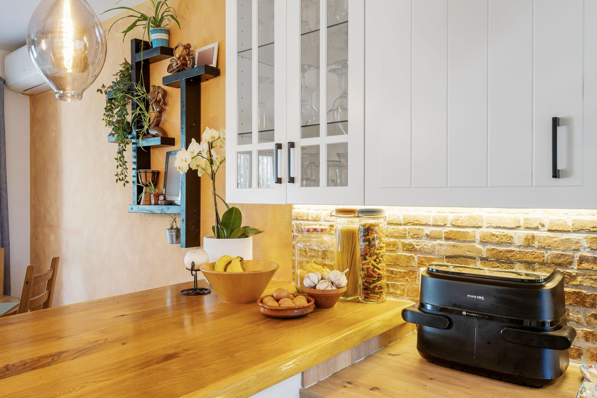 En entrant, vous découvrez un vaste séjour avec cheminée et une magnifique cuisine ouverte. Le séjour donne sur un jardin privatif ensoleillé avec barbecue, idéal pour se détendre en toute saison.