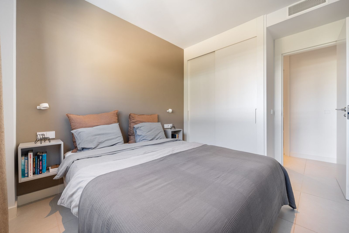 À l'intérieur, l'appartement est épuré et fonctionnel. Le séjour est structuré par des baies vitrées coulissantes du sol au plafond qui estompent la frontière entre intérieur et extérieur. Bénéficiant de finitions haut de gamme, à la hauteur du standing qui a fait d'Higuerón West le quartier le plus prisé, l'espace de vie ouvert offre une fluidité à la fois sophistiquée et naturelle.