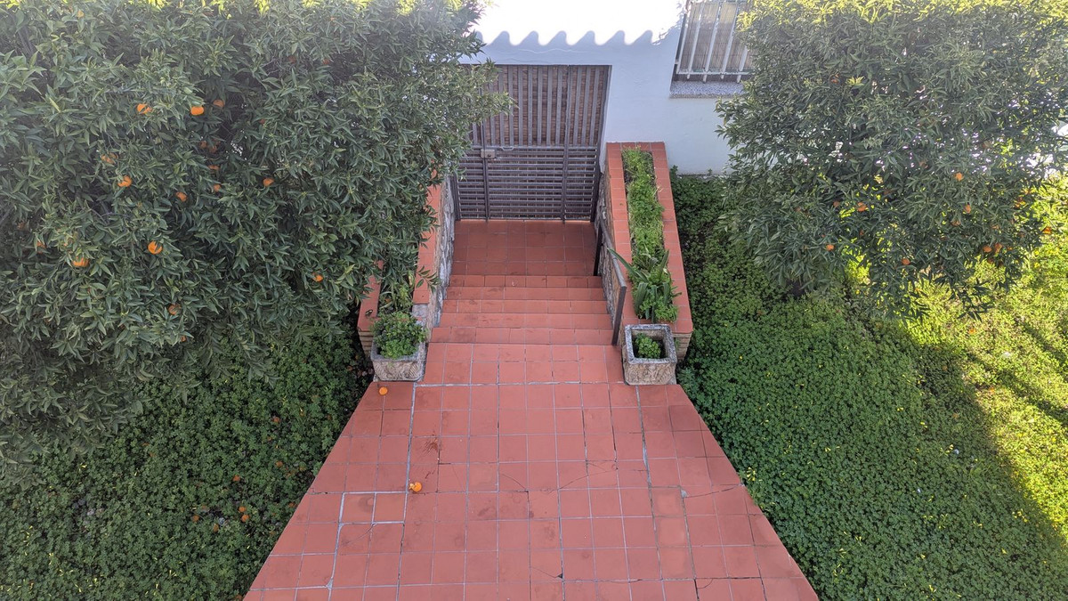 La maison se dresse au centre du terrain, entourée d'un charmant jardin arboré d'arbres fruitiers — orangers, citronniers, chérimoles et autres — qui offrent ombre naturelle et cachent un cachet unique. L'espace est suffisamment vaste pour y aménager une piscine et créer ainsi un véritable havre de paix.