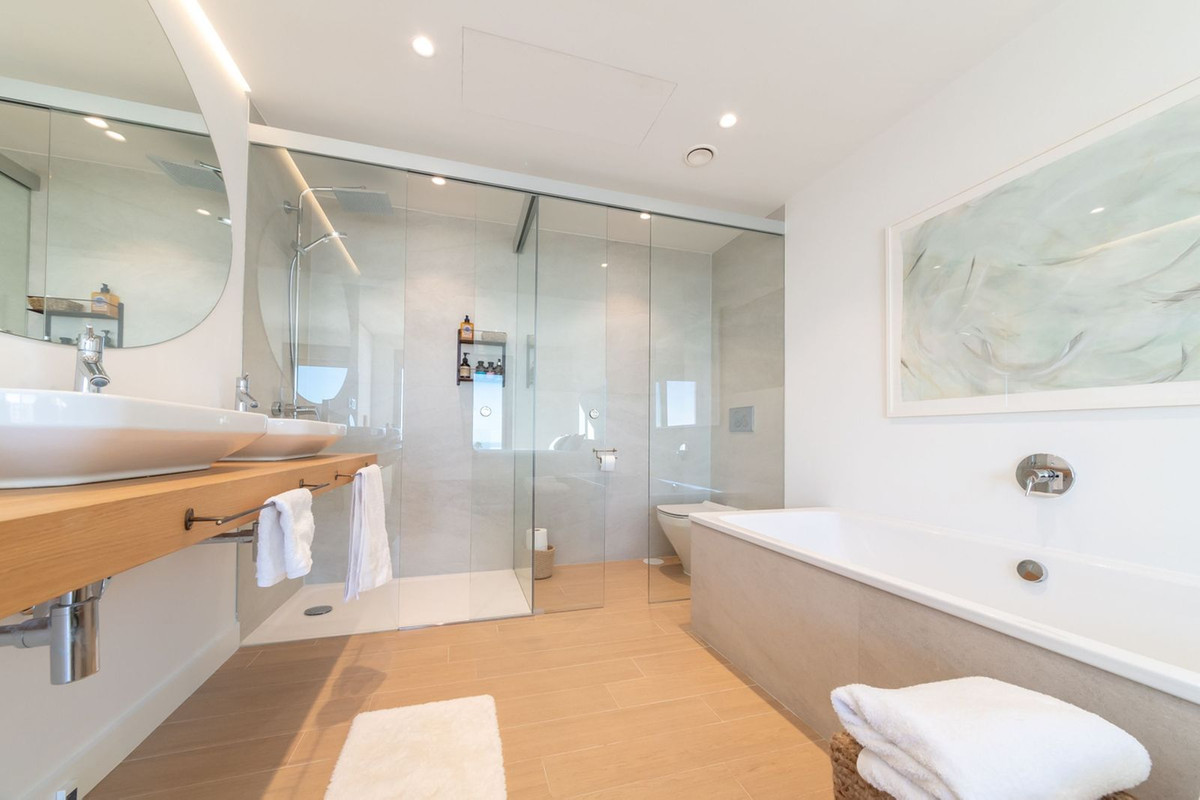 À l'étage, vous trouverez trois chambres, dont une suite parentale avec salle de bains privative équipée d'une douche et d'une baignoire. Les deux autres chambres se partagent une salle de bains complète. Deux des chambres donnent accès à une grande terrasse, idéale pour profiter du soleil et de la vue.