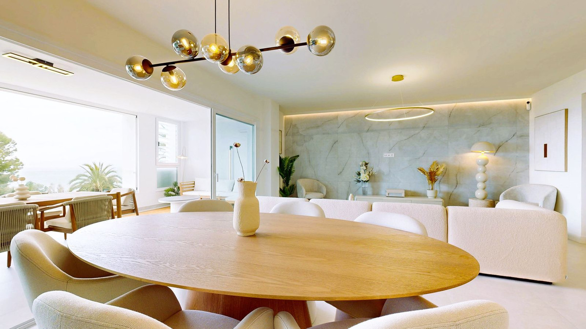 Cette remarquable propriété se distingue par ses généreux espaces intérieurs et sa luminosité naturelle, grâce à son orientation plein sud. Depuis sa vaste terrasse privée, les résidents profitent d'une vue panoramique imprenable sur la Méditerranée, offrant un cadre idéal pour les repas en plein air, les réceptions ou tout simplement pour se détendre en toute tranquillité.