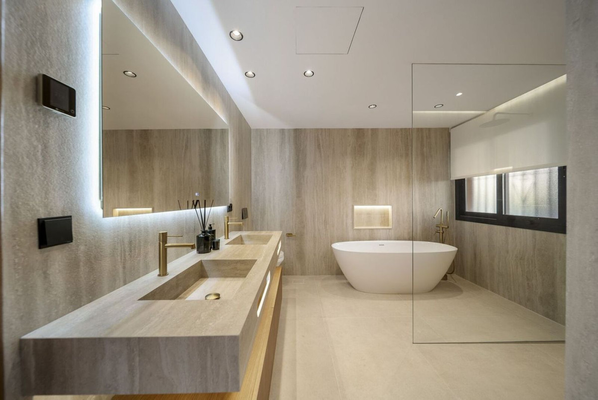 Méticuleusement rénovée selon les normes les plus élevées, la propriété comprend trois chambres spacieuses, trois salles de bains modernes équipées de chauffage au sol et de climatiseurs individuels, ainsi que de vastes espaces de vie qui se prolongent harmonieusement sur la terrasse, parfaits pour organiser des réceptions ou profiter d'un style de vie luxueux.