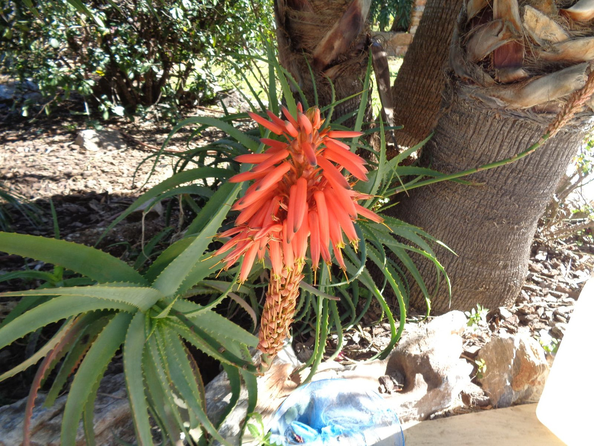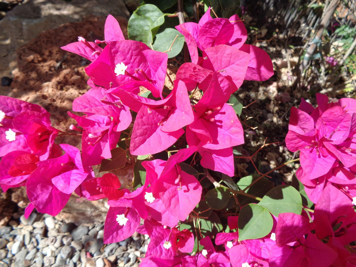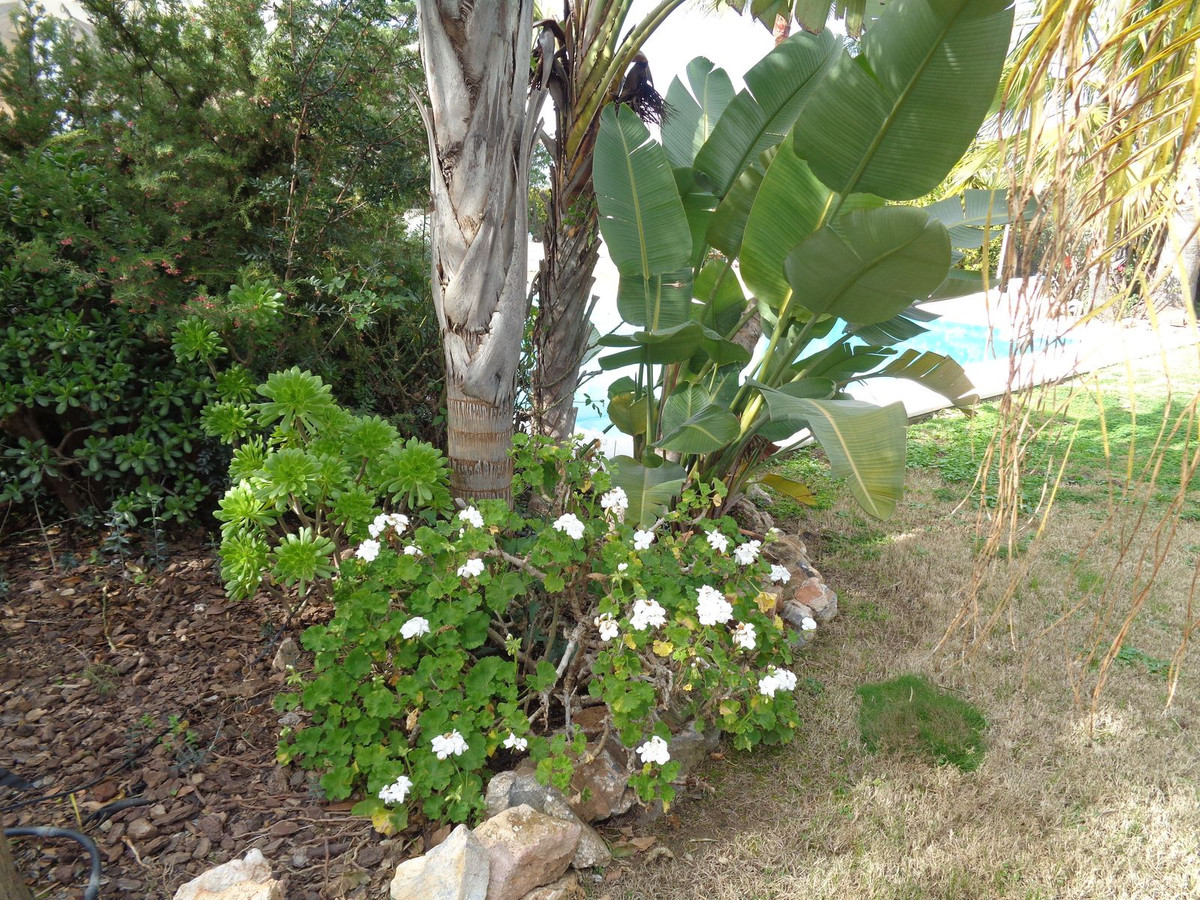 Depuis la piscine, le sentier serpente à travers le jardin, longeant d'incroyables rosiers, un petit jardin d'herbes aromatiques, des arbres et arbustes indigènes et un figuier généreux. Presque tout le périmètre est protégé par l'ombre saisissante des bougainvillées.