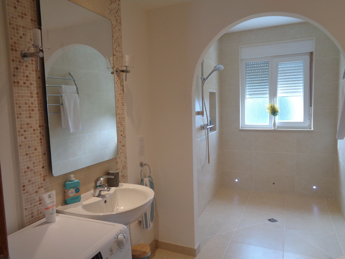 Au deuxième étage, vous trouverez également une très grande salle d'eau avec douche à l'italienne, lavabo, bidet, WC et sèche-serviettes chauffant.