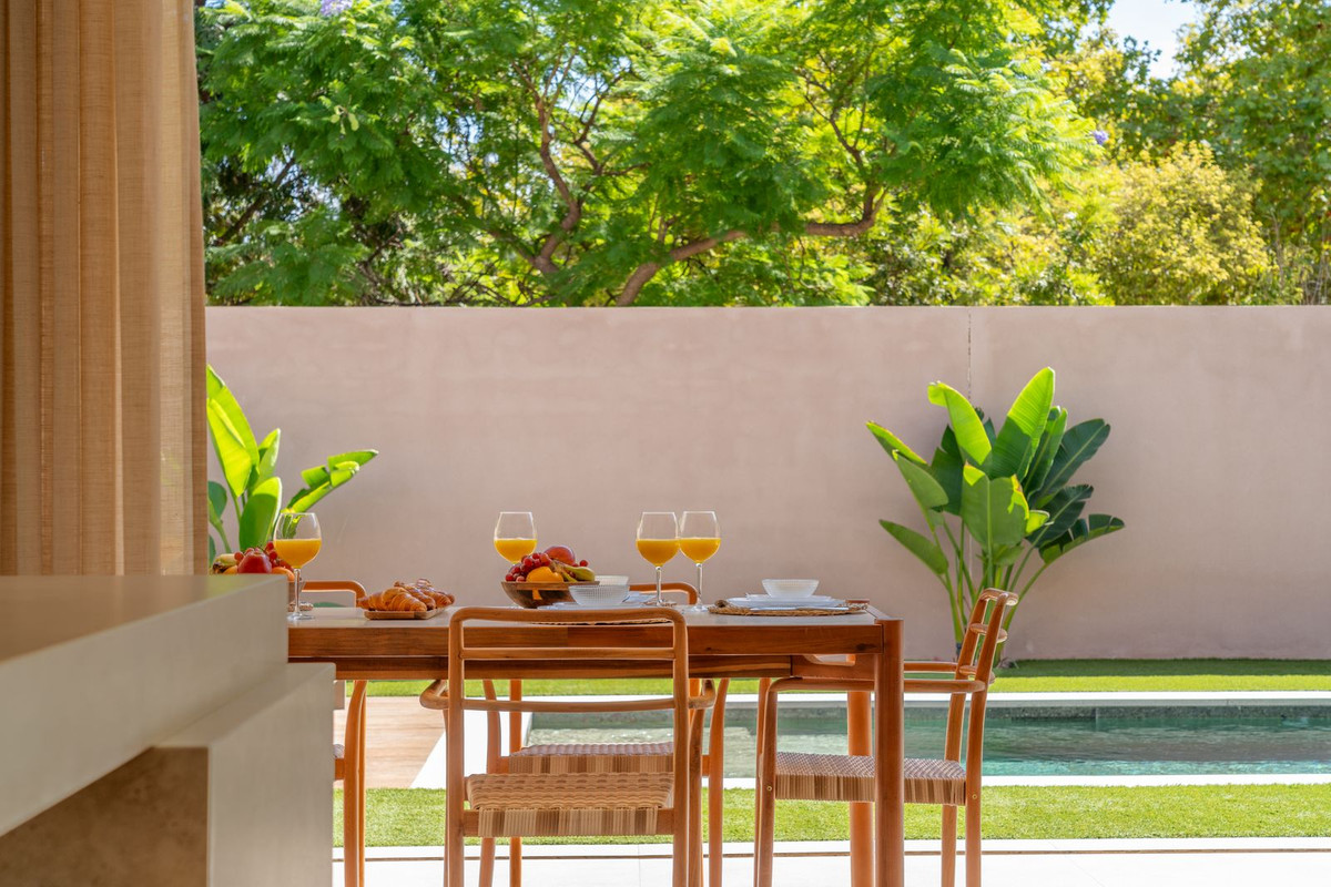 Elle comprend une piscine d'eau salée chauffée (3 x 17 m), un jardin privé et une terrasse extérieure entièrement équipée pour dîner en plein air ou prendre un verre au coucher du soleil avec vue sur la montagne.