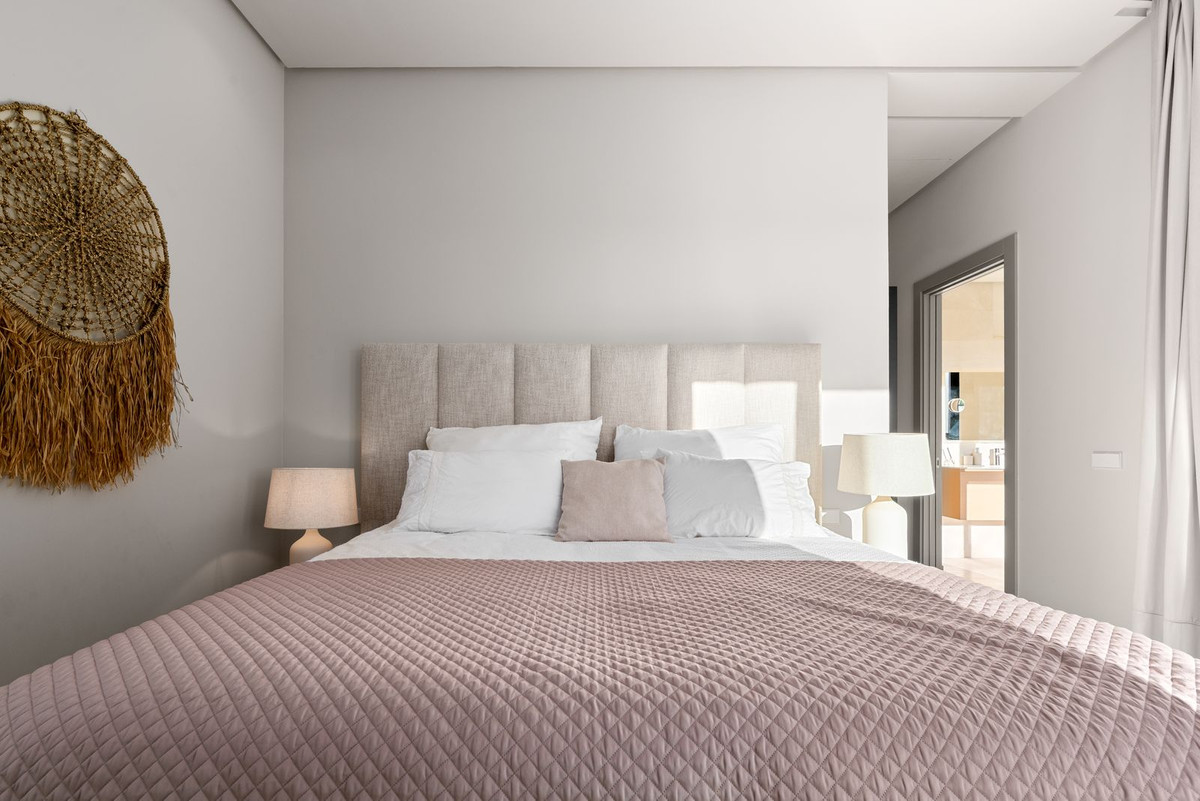 Le niveau principal est dédié à un espace de vie contemporain et ouvert, baigné de lumière naturelle grâce à de grandes baies vitrées qui créent une transition harmonieuse entre l'intérieur et le paysage environnant. De larges portes coulissantes ouvrent sur une vaste terrasse, idéale pour des repas en plein air jusqu'à douze convives avec vue sur la Méditerranée. Ce niveau comprend également une élégante cheminée à gaz, des toilettes invités et une cuisine entièrement équipée avec plans de travail en Silestone et électroménager haut de gamme Miele, complétée par une buanderie extérieure et un charmant jardin.