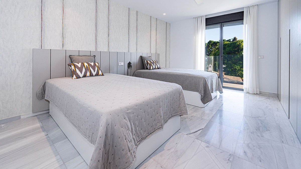 Construite en 2024, cette propriété unique allie intimité, élégance, design contemporain et un emplacement exceptionnel, à quelques minutes de la plage et des commodités haut de gamme. Sur un terrain de 1 485 m² et avec 420 m² de surface habitable, cette villa offre espace, luminosité naturelle et confort optimal. Répartie sur trois niveaux, elle comprend au rez-de-chaussée un hall d'entrée majestueux, un magnifique séjour-salle à manger avec plusieurs espaces distincts s'ouvrant harmonieusement sur l'extérieur grâce à ses larges baies vitrées reliant les vastes terrasses, la piscine et le jardin, des toilettes invités, une cuisine entièrement meublée et équipée, une buanderie, une chambre de service avec salle de bains attenante à la cuisine, et deux chambres spacieuses avec chacune sa propre salle de bains. Le premier étage abrite une grande suite parentale avec accès à une vaste terrasse, comprenant une grande chambre, un dressing et une salle de bains, ainsi qu'une autre chambre avec salle de bains privative. Le deuxième étage offre une grande terrasse solarium avec vue panoramique sur Marbella. Un grand parking est disponible sur la propriété.