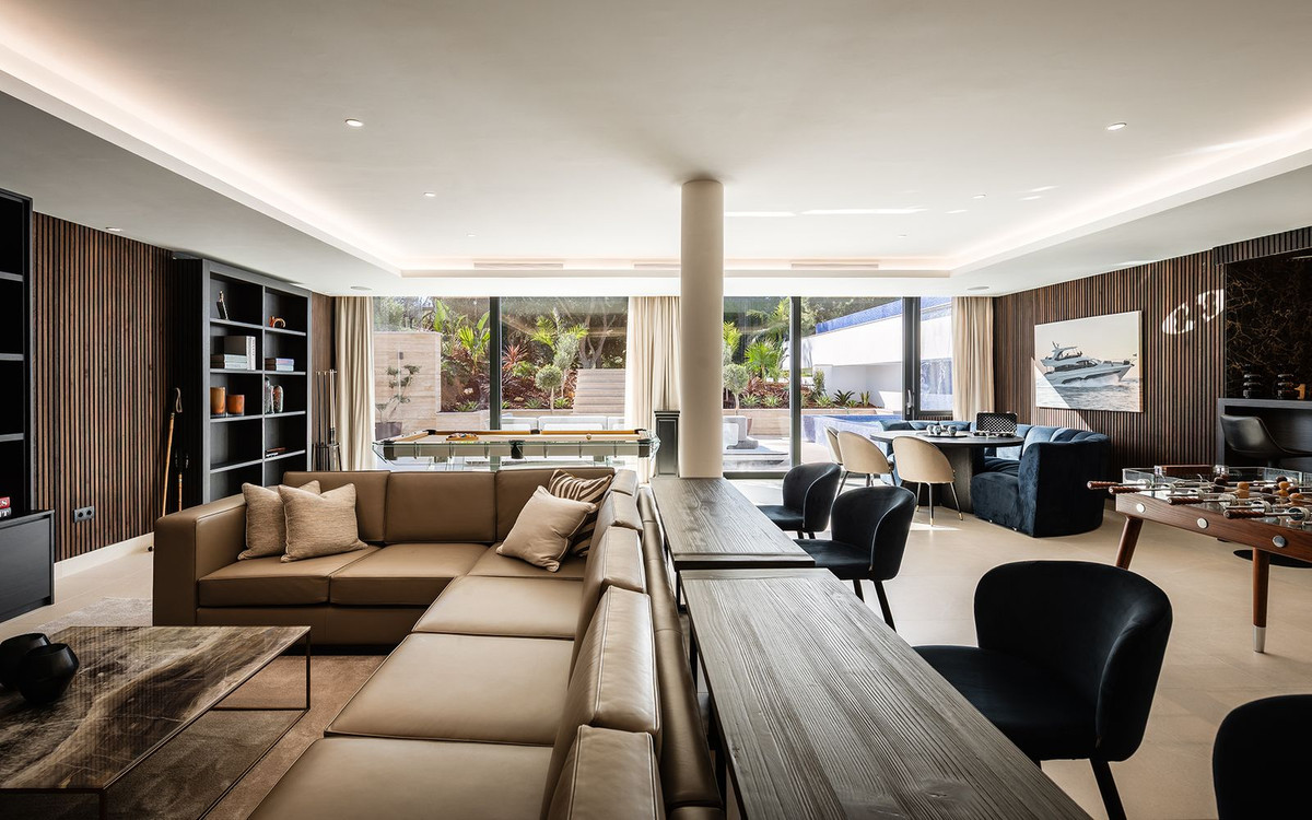 Double-height interiors, seamless indoor–outdoor areas and a stunning kitchen make it ideal for both everyday life and entertaining. With seven en-suite bedrooms, rooftop terraces, wellness areas and a serene infinity pool, it offers privacy, comfort and effortless luxury in one of Sotogrande’s most sought-after locations.