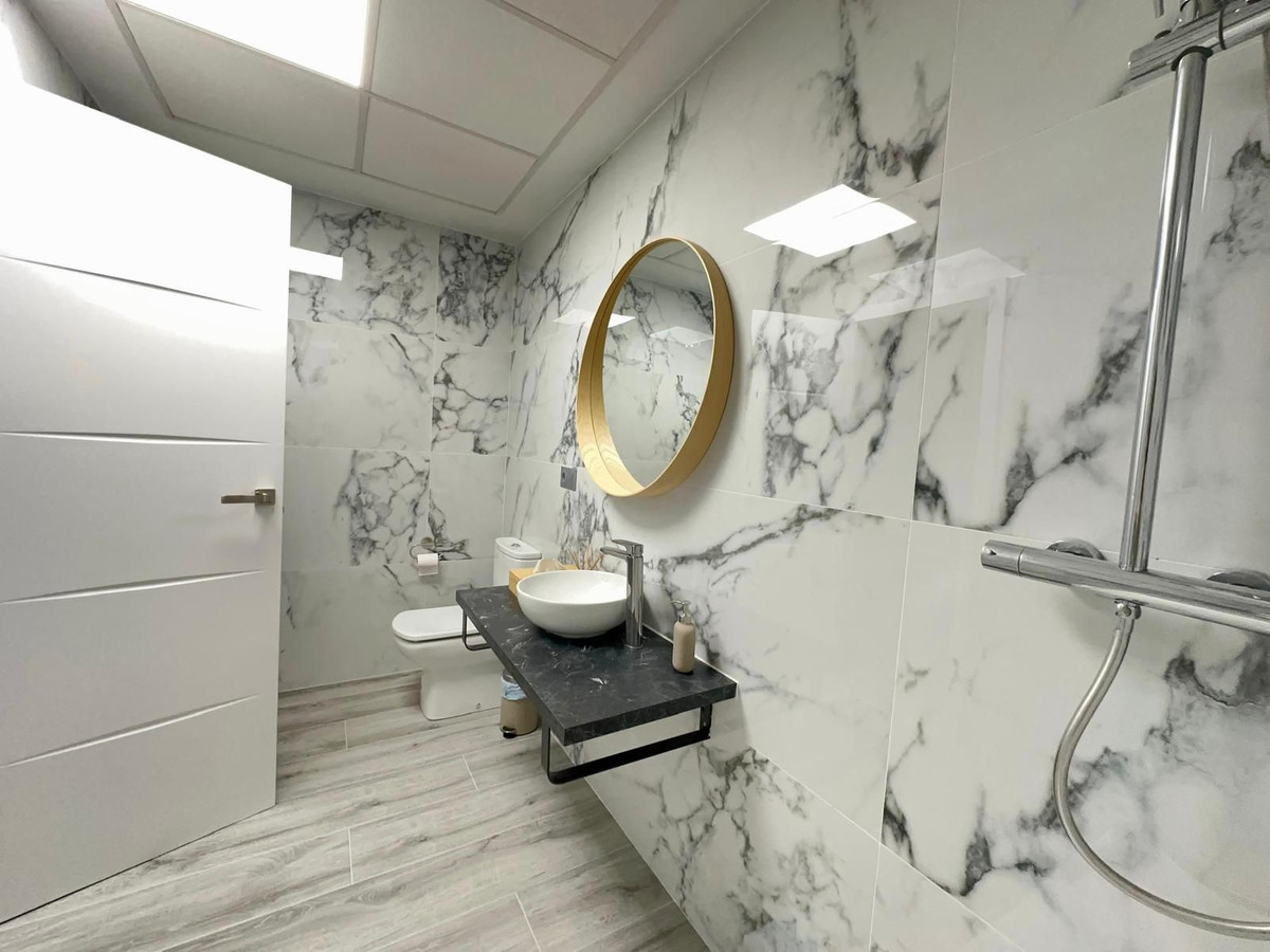 L'appartement comprend une salle de bains moderne et entièrement équipée, la climatisation et un parquet de haute qualité, soulignant son style contemporain et son confort.