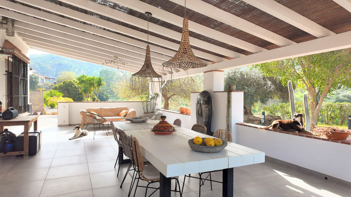 S'étendant sur un vaste terrain de 10 000 m², la propriété offre une intimité totale et une véritable communion avec la nature. Elle abrite une riche flore méditerranéenne ; vous pourrez y cultiver vos propres avocats, oranges, citrons et mandarines, parmi tant d'autres espèces qui composent ce jardin luxuriant et parfumé. Au coucher du soleil, l'ancien château d'Álora illumine l'horizon, offrant un cadre spectaculaire pour savourer un verre en terrasse.