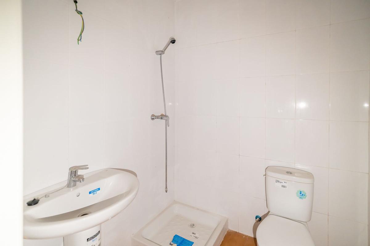 Pièce supplémentaire de 33 m² avec salle de bains attenante, haut plafond et petite fenêtre assurant ventilation et lumière naturelle.