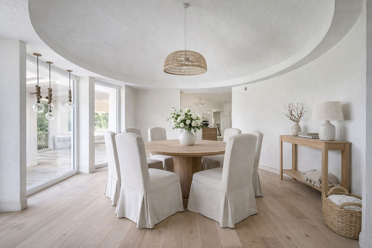Située dans la communauté fermée très prisée de Los Almendros, dans la municipalité de Benahavís, cette imposante villa occupe un impressionnant terrain de 5 000 m² en première ligne de golf surplombant le parcours de golf Los Arqueros.