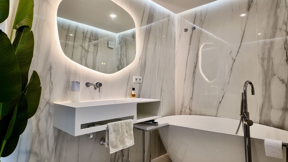 Le point fort de cette propriété réside dans son niveau supérieur : une vaste terrasse sur le toit avec jacuzzi et un second espace barbecue, offrant une vue panoramique sur la mer, La Concha et même Gibraltar. Un atout rare à ce prix, idéal pour un usage personnel ou un investissement locatif.