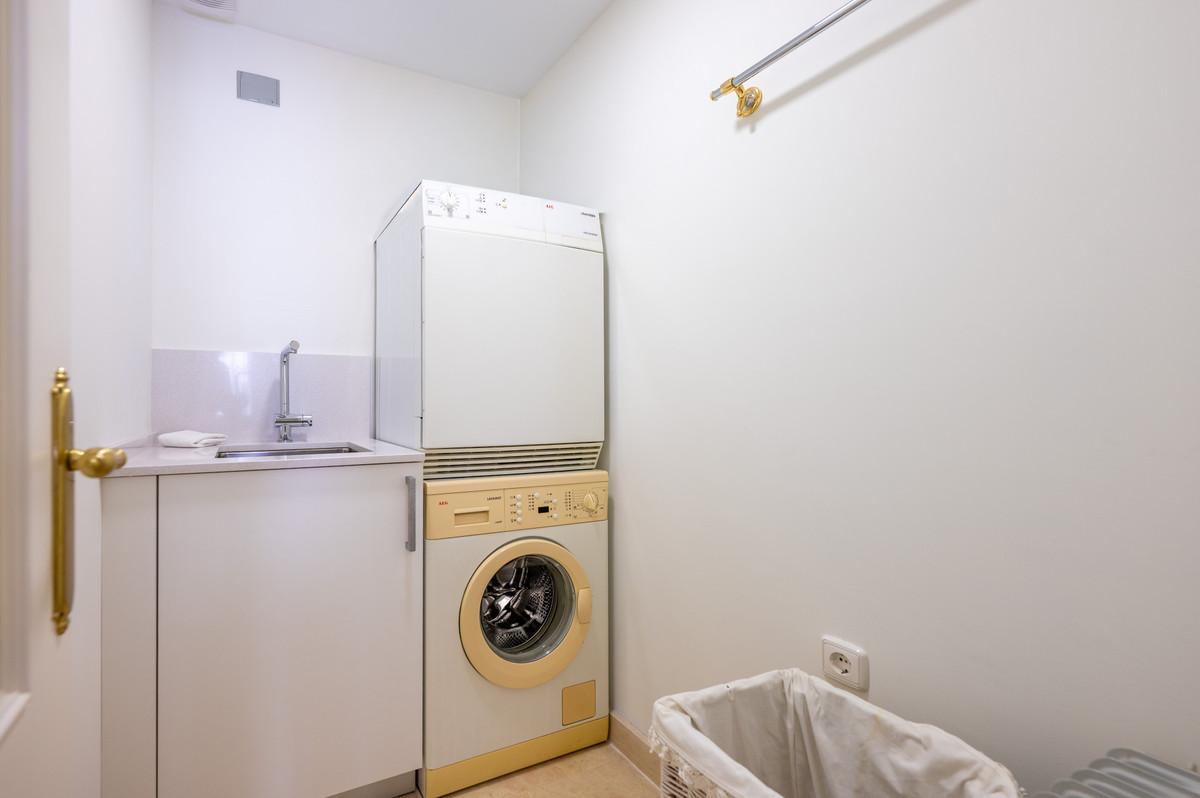 À l'étage, la suite parentale dispose d'une spacieuse salle de bains privative et s'ouvre sur une terrasse découverte entièrement privée. Sa position surélevée amplifie considérablement la vue panoramique déjà magnifique. De là, un escalier mène au joyau de la maison : un solarium de 30 m² sur le toit, offrant une vue imprenable sur la vallée du golf de Nueva Andalucía et les montagnes environnantes, un espace idéal pour admirer le coucher du soleil et profiter des longues soirées méditerranéennes.