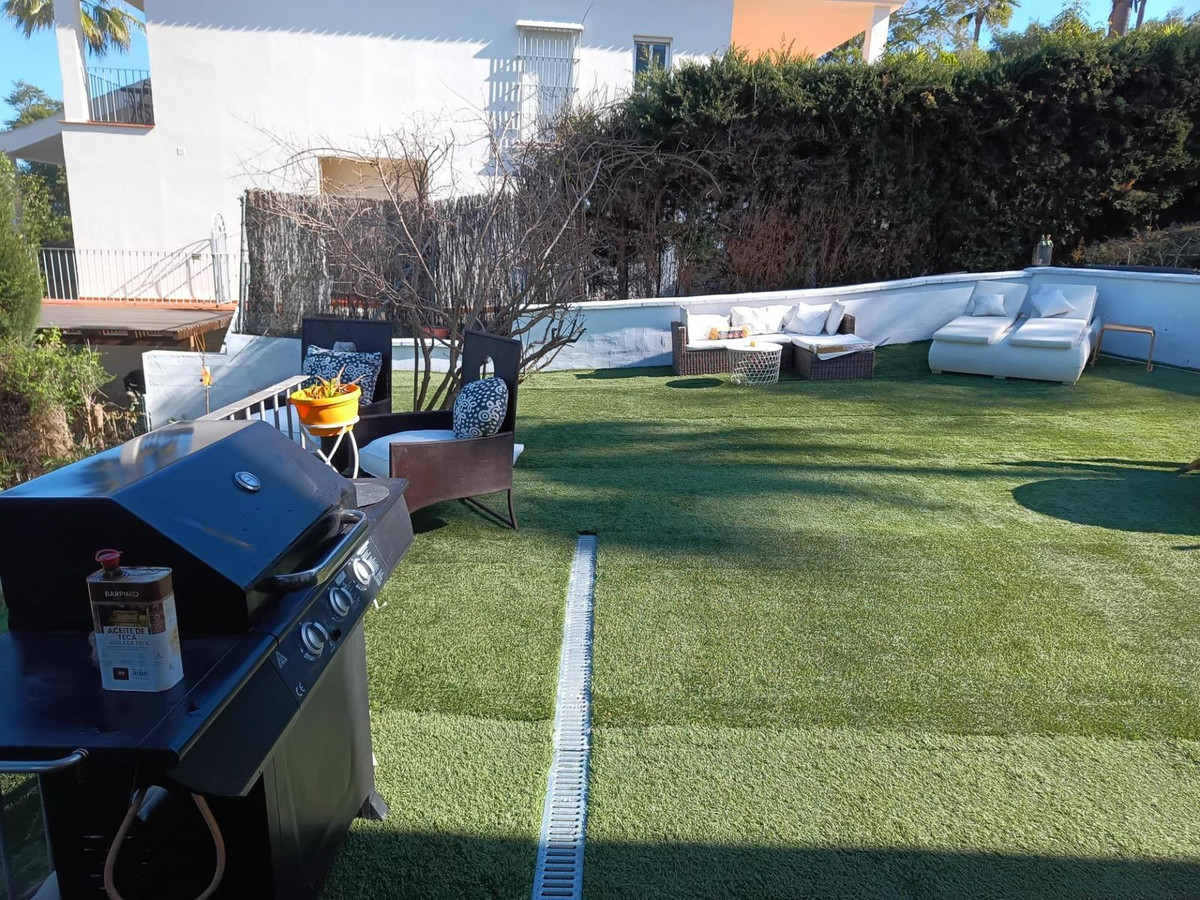 Chacune des cinq chambres avec salle de bains privative a été conçue pour le repos et l'intimité, offrant des vues sereines qui invitent à la détente. Le clou du spectacle : une vue imprenable sur le golf, un rappel constant du style de vie privilégié de Sotogrande. À l'extérieur, une piscine chauffée trône au cœur d'un jardin de 1 000 m², un cadre idéal pour savourer des moments inoubliables en toute saison.