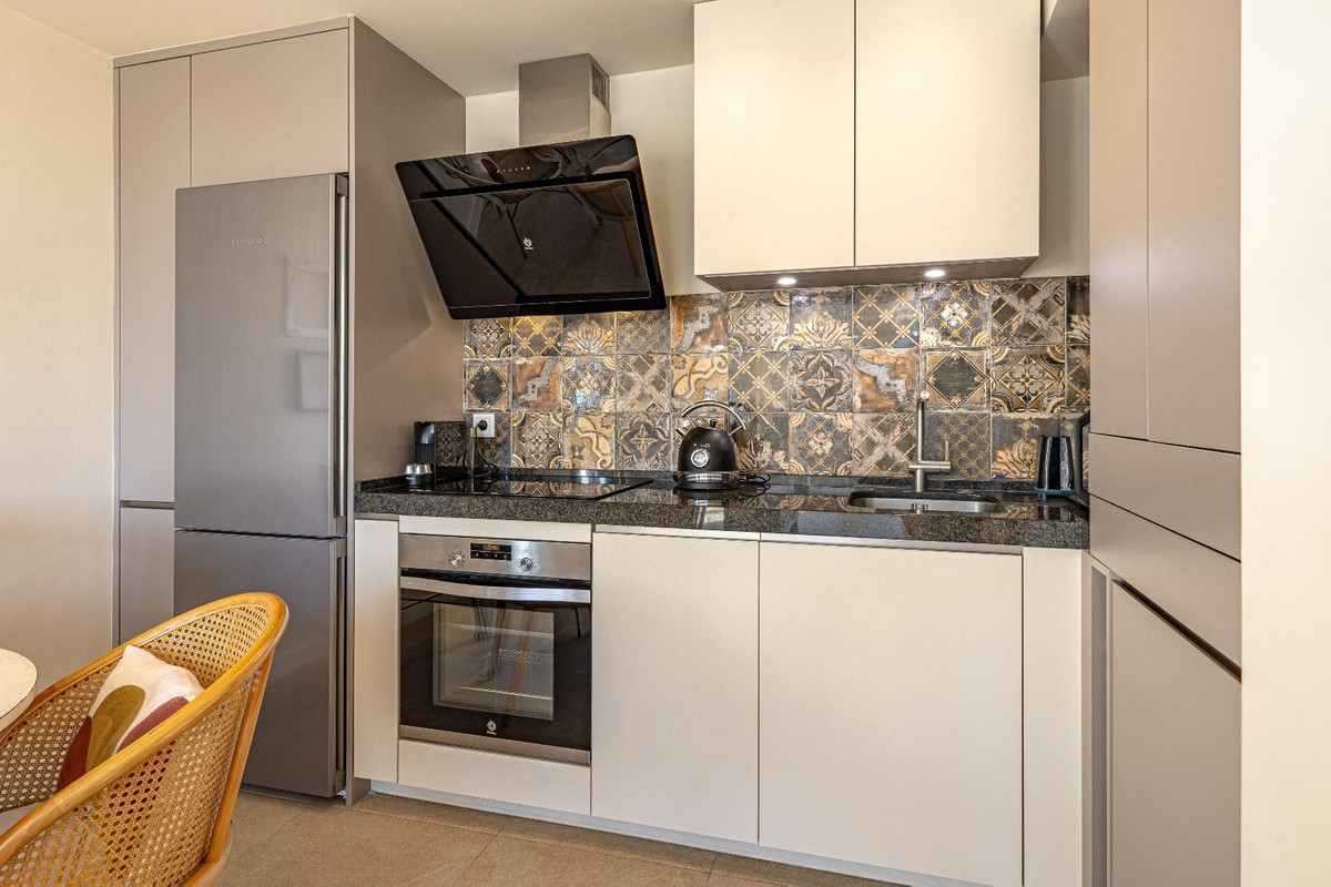 La cuisine ouverte et entièrement équipée s'intègre harmonieusement à l'espace, y ajoutant fonctionnalité et style.