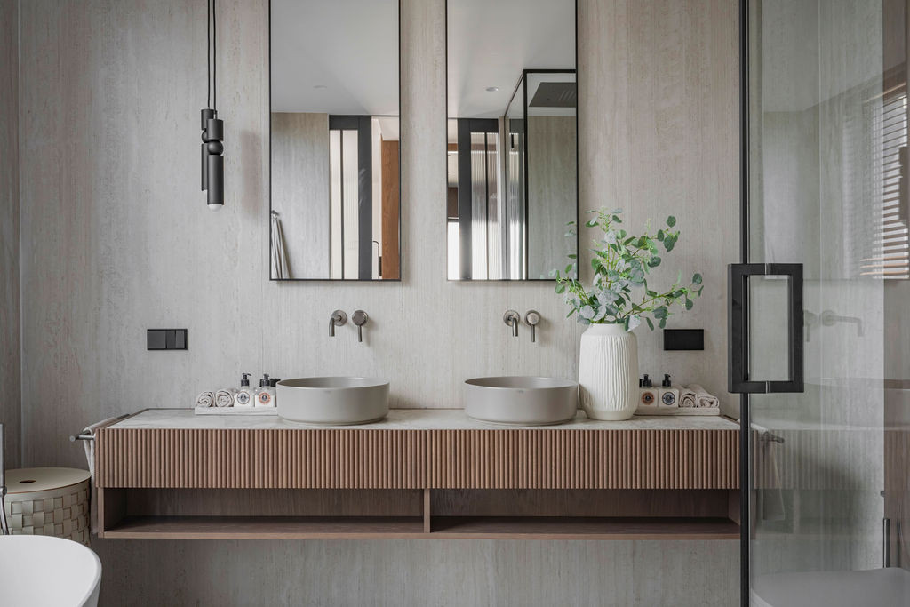 Construite avec des matériaux de haute qualité et des techniques de construction modernes, la propriété présente d'élégantes finitions en bois, des murs en briques pour plus de durabilité, des portes coulissantes à galandage en plâtre et des portes et cloisons contemporaines en métal et en verre, alliant esthétique et fonctionnalité.