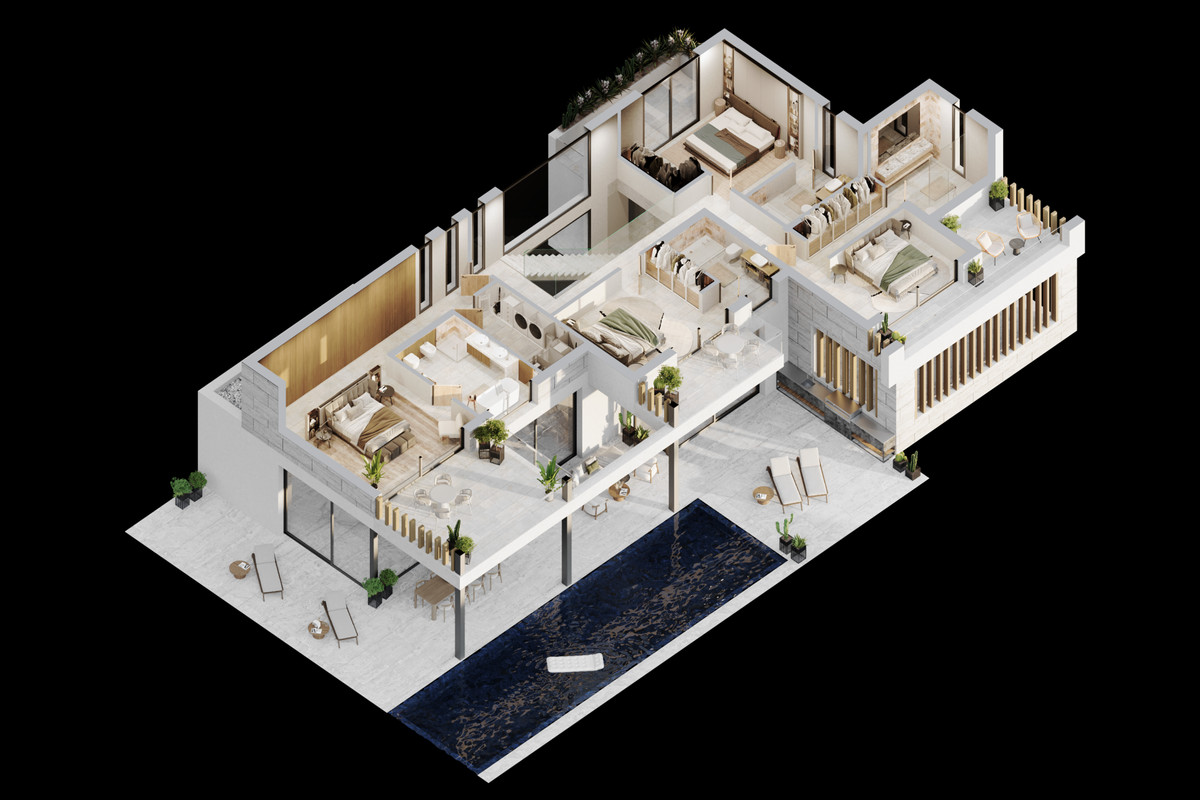 Conçue pour ceux qui apprécient l'espace, l'intimité et une élégance discrète, cette villa d'exception est située sur un terrain privé de 1 041,19 m² dans l'un des quartiers les plus prisés du New Golden Mile.