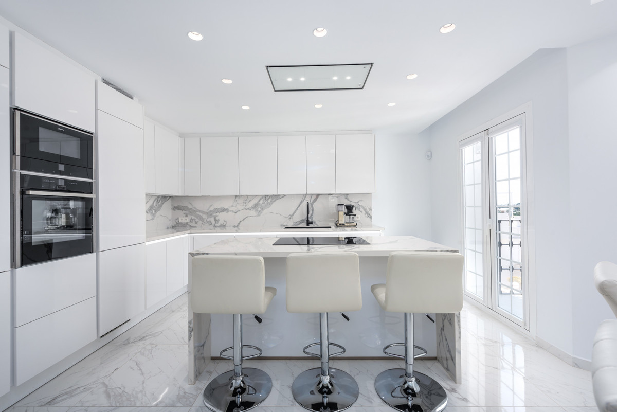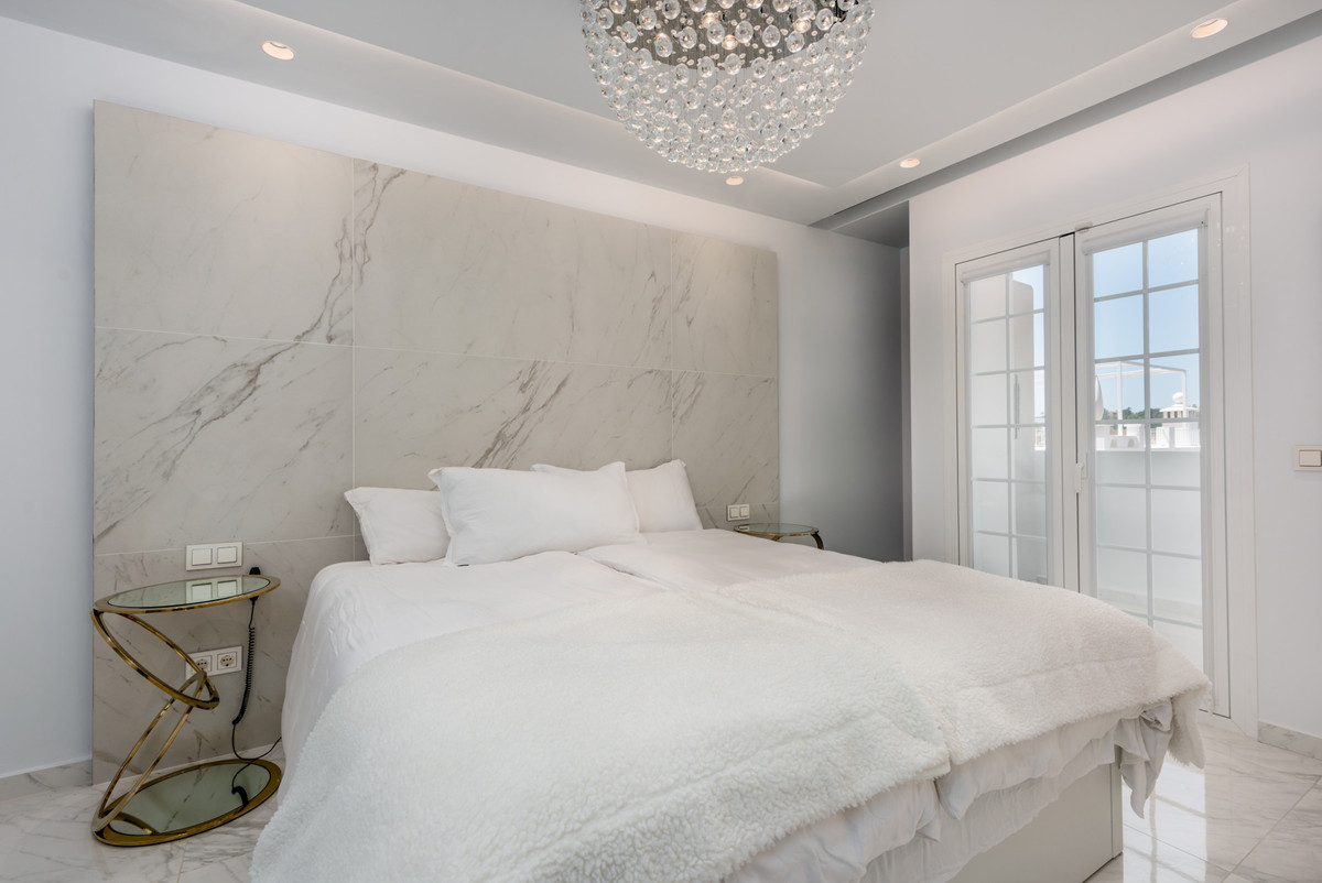 Cette maison de ville de 3 chambres, magnifiquement rénovée, est située dans une urbanisation prestigieuse au cœur de la célèbre Vallée du Golf de Nueva Andalucía.