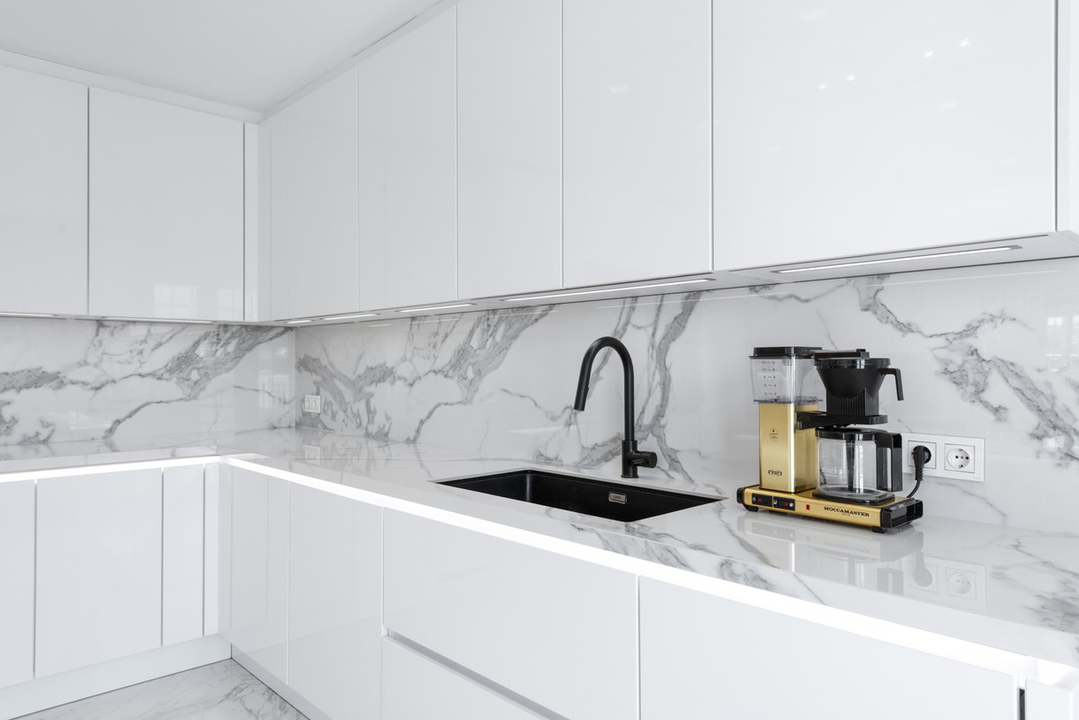 La cuisine ouverte sur le séjour, spacieuse et lumineuse grâce à sa lumière naturelle, allie confort et style. La cuisine moderne est entièrement équipée d'appareils Neff intégrés, tandis que le salon élégant est agrémenté d'une magnifique cheminée à l'éthanol, créant une ambiance chaleureuse et accueillante.
