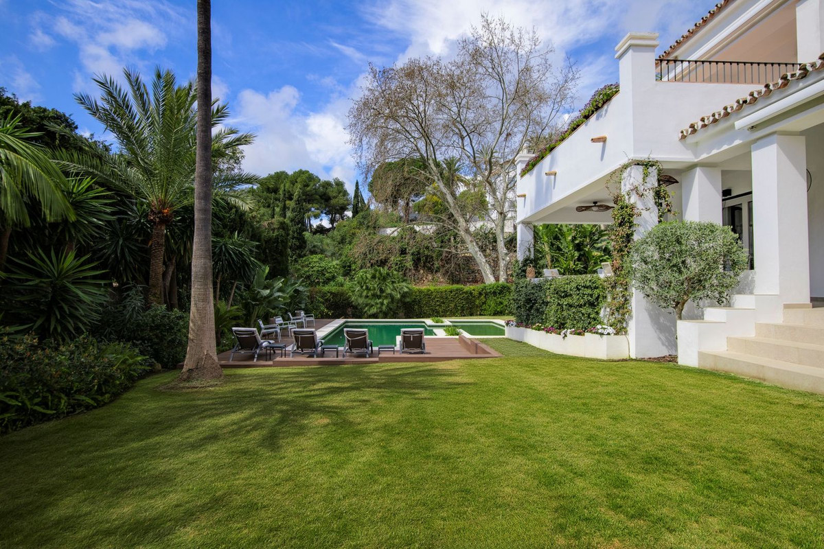 Le jardin paysager mature préserve l'intimité et ajoute de la profondeur au site. Depuis l'étage supérieur, la villa bénéficie d'une vue dégagée sur la mer et la verdure environnante, tandis que le solarium sur le toit offre un panorama à 360° embrassant la Méditerranée, les montagnes et le paysage si particulier de la Sierra Blanca.