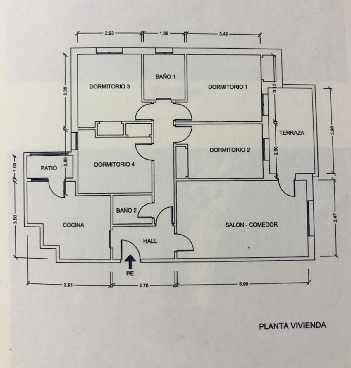 Cet appartement d'environ 90 m² habitables (114,43 m² construits) offre un agencement bien pensé, idéal pour une famille et ses invités. Il comprend un hall d'entrée accueillant, une cuisine avec coin buanderie, un séjour/salle à manger lumineux donnant sur une terrasse, quatre chambres, une salle de bains et des toilettes invités avec douche.