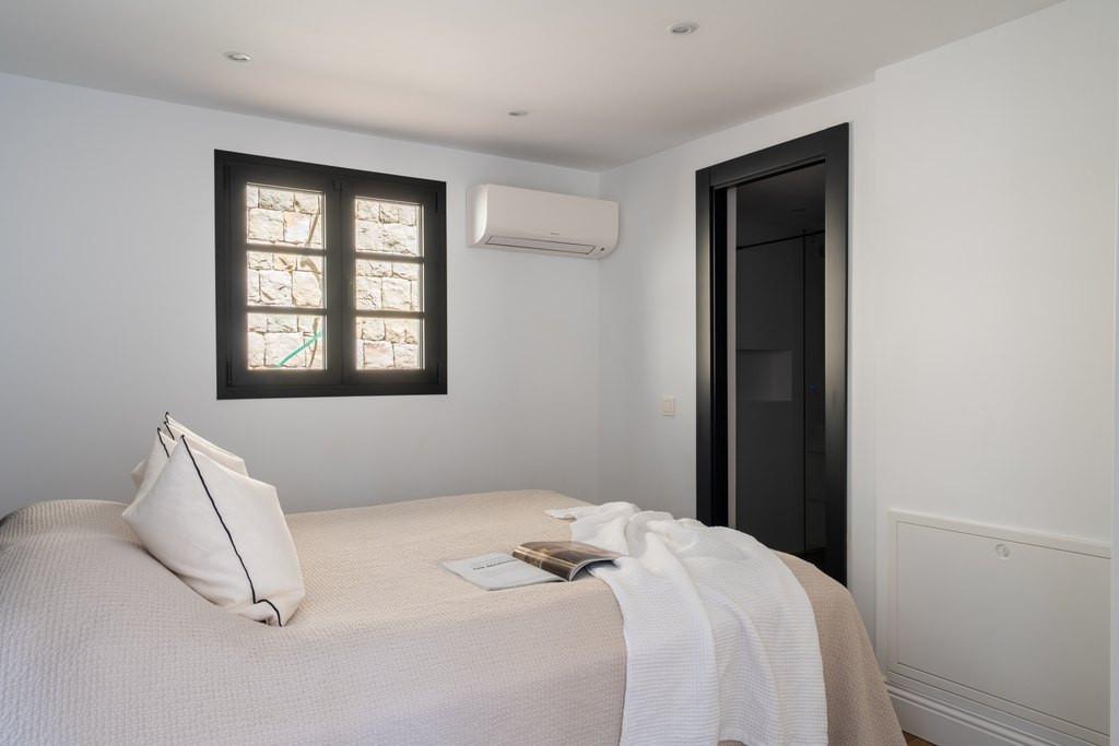 Dans toute la maison, les spécifications techniques et les finitions ont été soigneusement modernisées, notamment le chauffage au sol avec pompe à chaleur Daikin, la climatisation individuelle, le carrelage imitation bois, les salles de bains Villeroy & Boch, la robinetterie Tres et une baignoire Vela. La propriété est également équipée de fenêtres en aluminium à double vitrage, d'un système domotique et de sécurité complet, ainsi que d'une plomberie et d'une installation électrique entièrement refaites à neuf et raccordées au réseau.