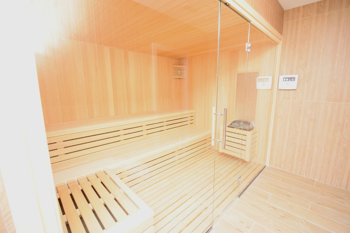 Espace de coworking. Salle de sport équipée avec sauna et douches.